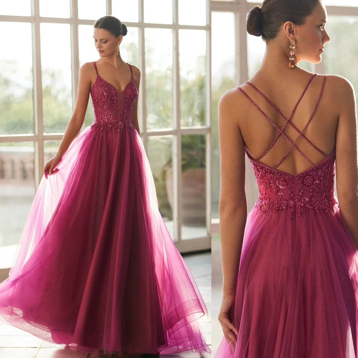 Vestido de fiesta largo. Confeccionado en tul con pedrería. Con ...