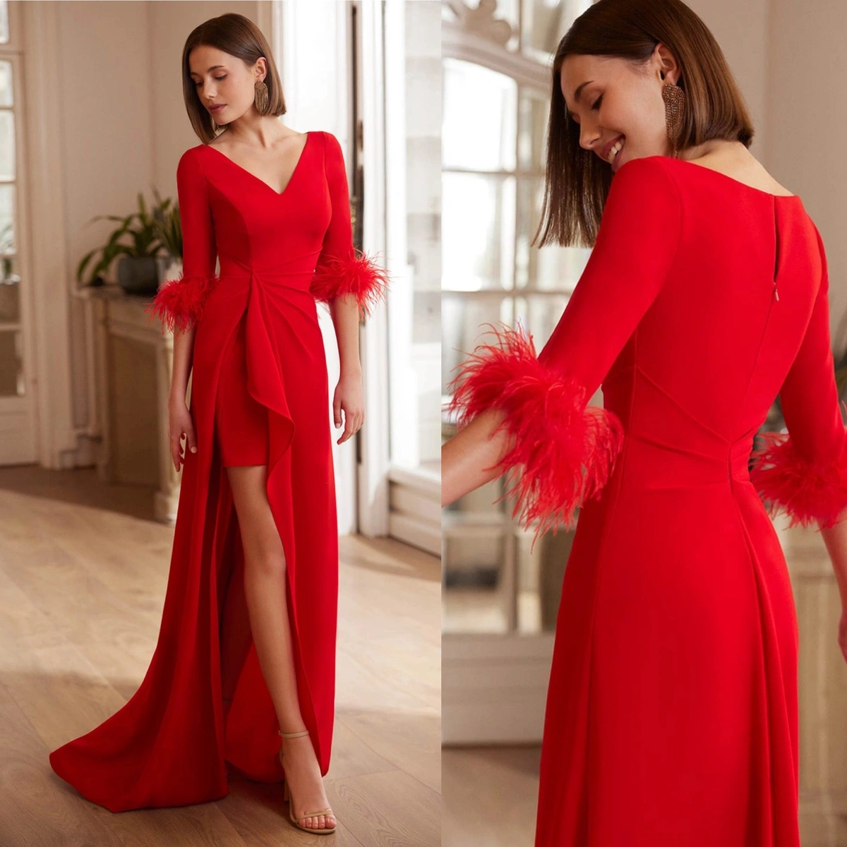 Vestido de fiesta largo. Confeccionado en pedrería con plumas. Con ...