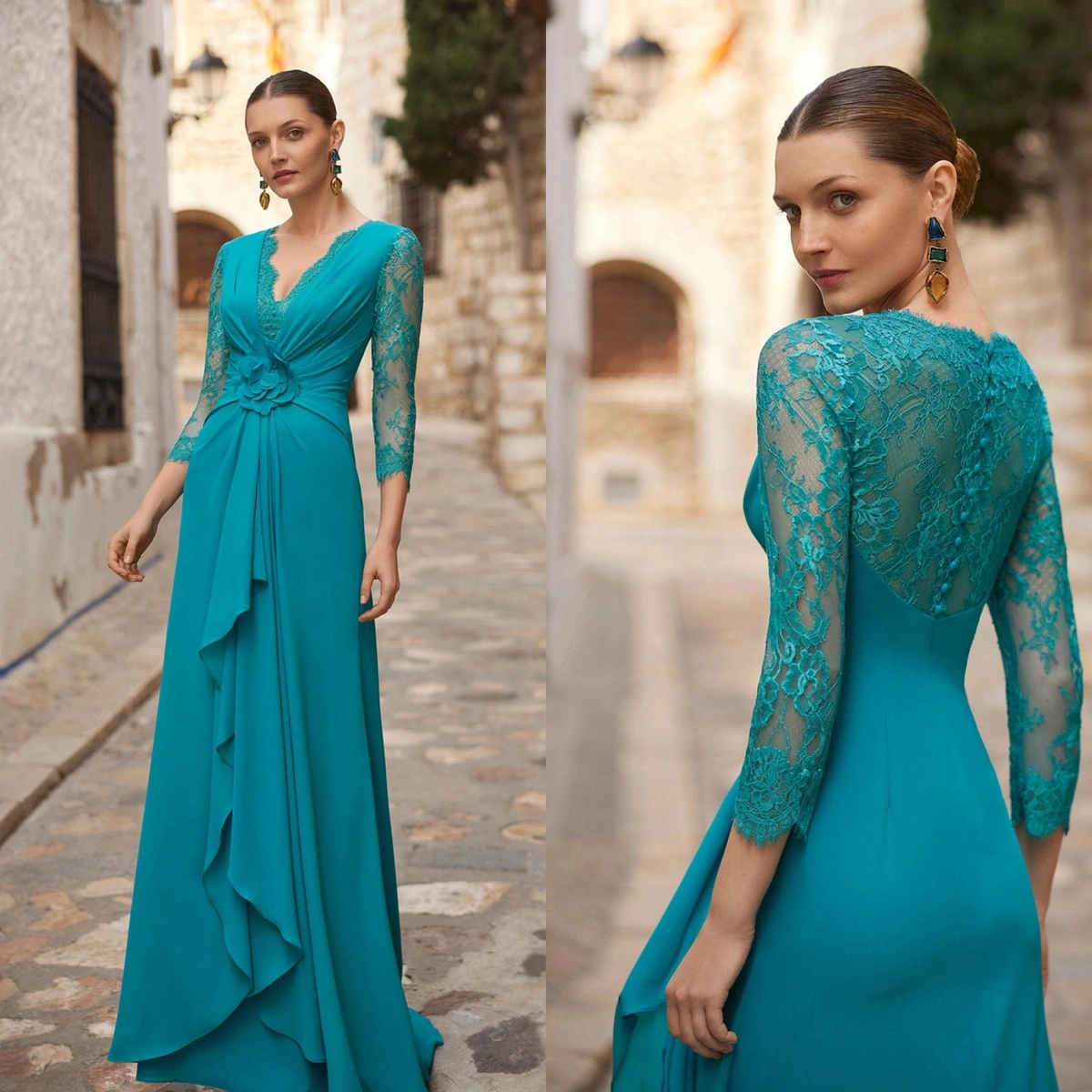 Vestido de invitada largo y estilo moderno. Elaborado con crepé ...