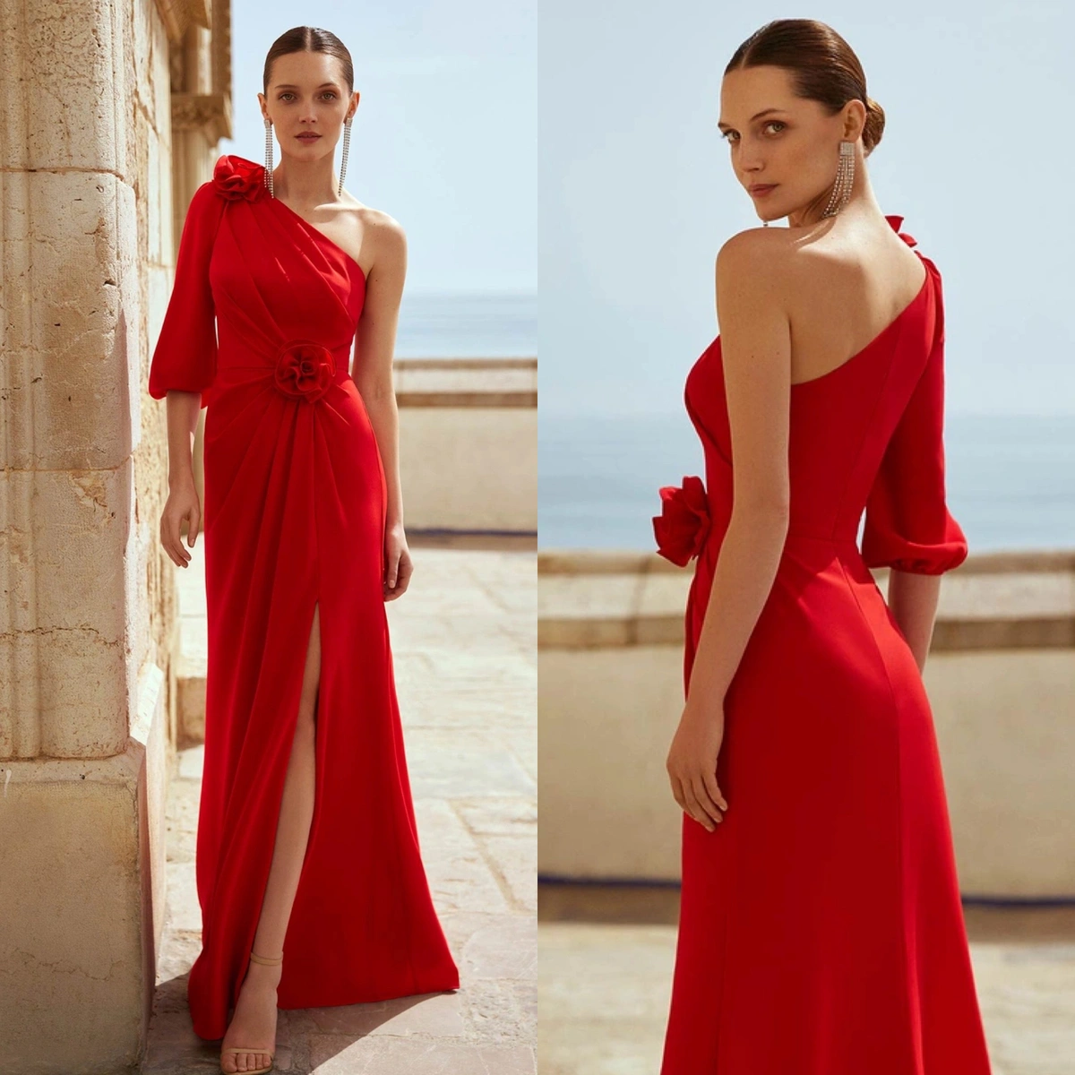 Vestido de invitada largo y estilo moderno. Confeccionado en crepe ...