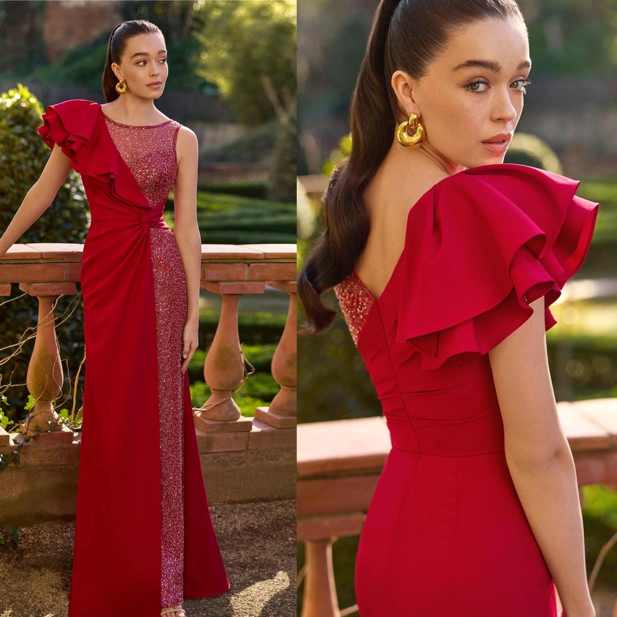 Vestido de fiesta largo. Confeccionado en crepé elástico y pedrería. ...