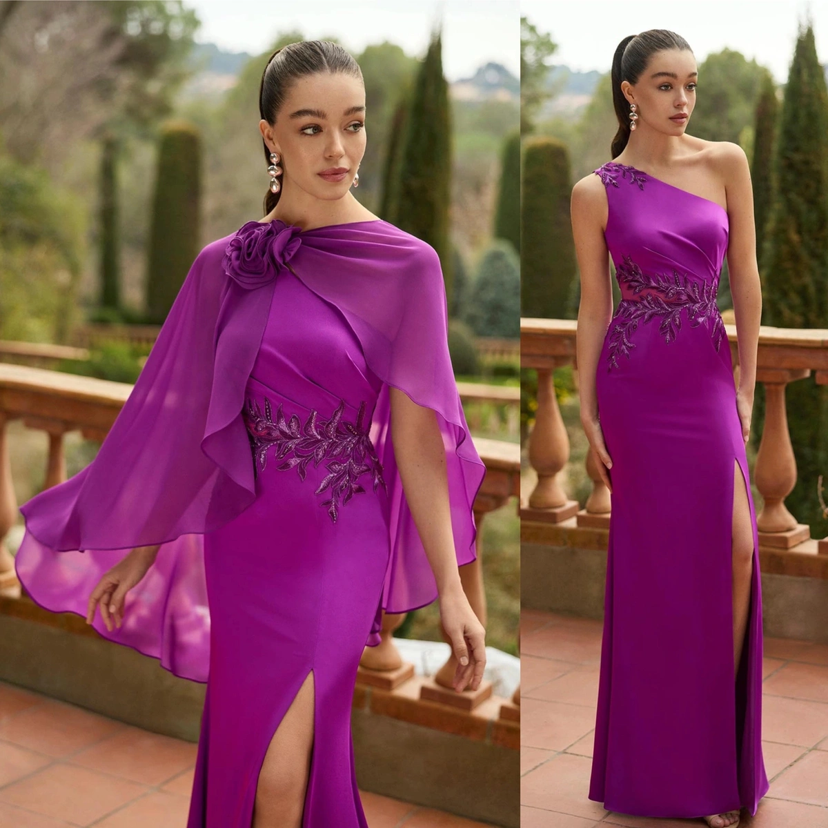 Vestido de fiesta largo. Confeccionado en crepé satén. Escote asimétrico. ...