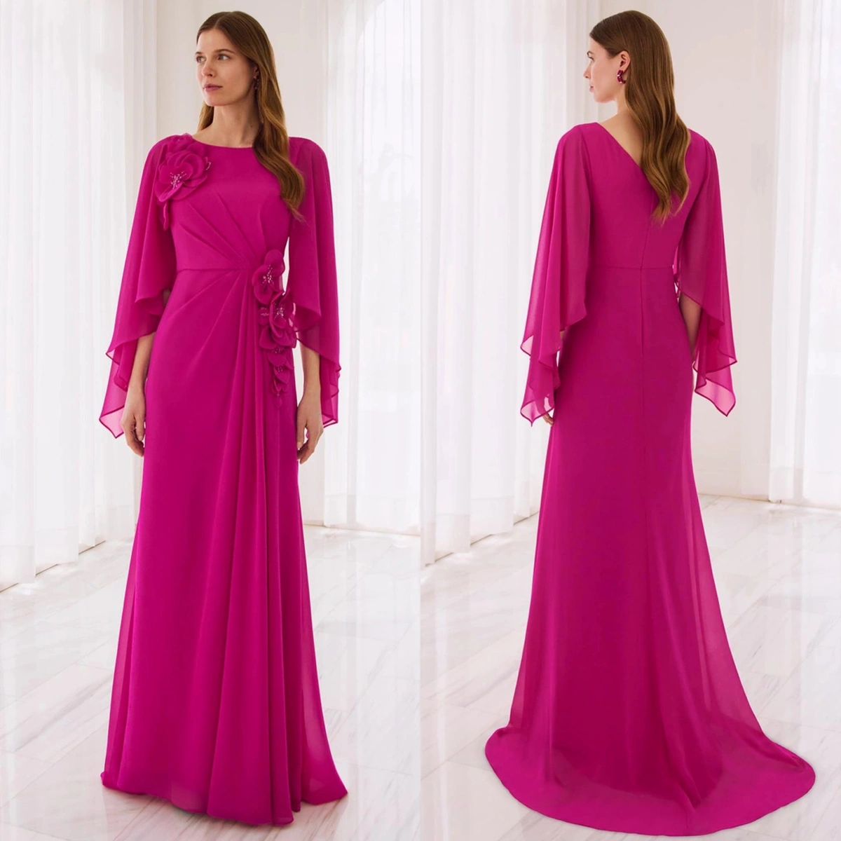 Vestido de fiesta largo, confeccionado gasa con detalle de mangas ...