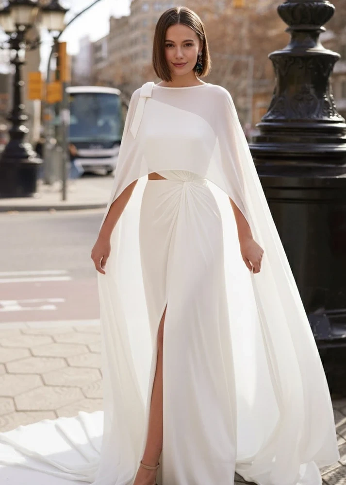 Vestido de novia de dos piezas largo, de corte sirena ...