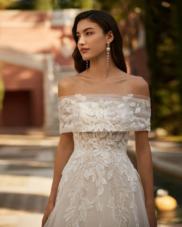 Vestido de novia, cuello extraíble.