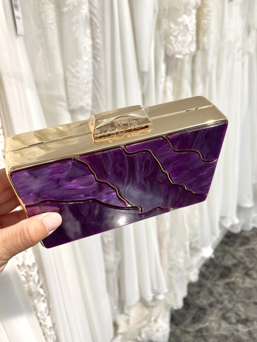 Bolso de nácar y metal en dorado. El mismo bolso lleva una cadena por si se quiere llevar colgado. Tiene el tamaño ideal para poder llevar un smartphone o maquillaje.