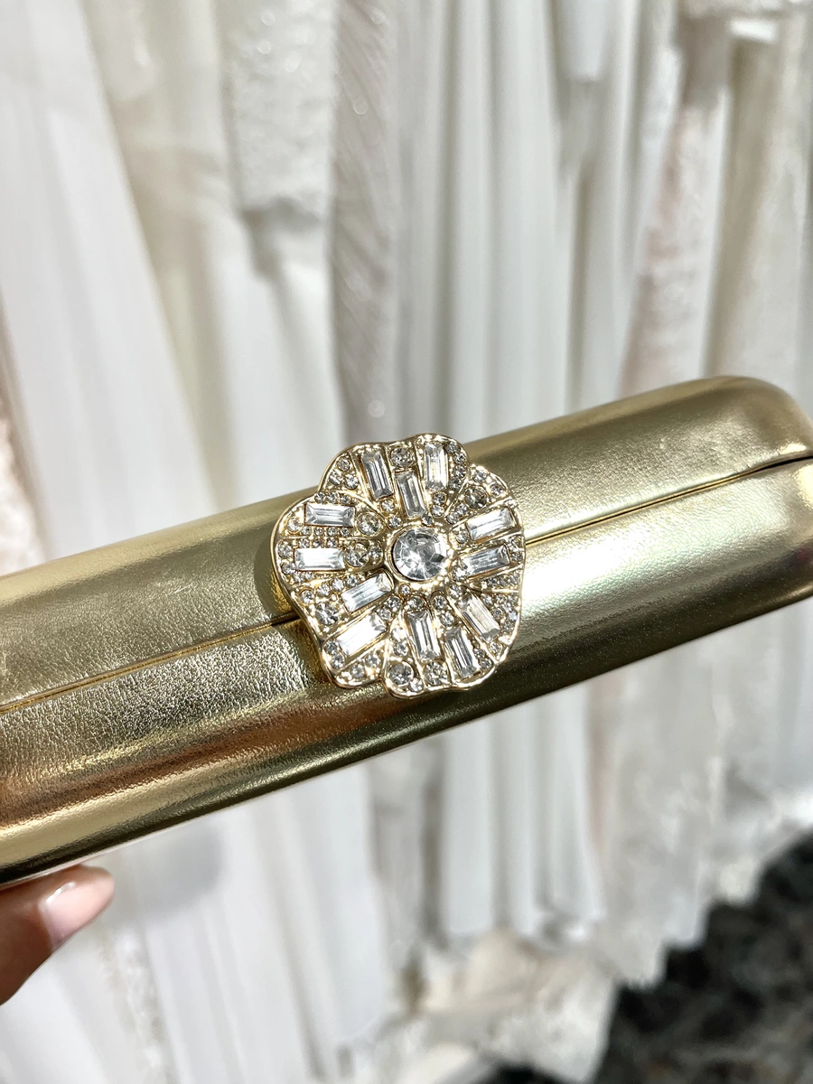Bolso de fiesta, con cierre metalizado de una flor toda con pedrería, sin duda un modelo super elegante. Lo bueno de este bolso es que tiene una cadena para llevar colgado al hombro si se desea, su material es muy liso, por lo que no te va a estropear la tela del vestido y su tamaño permite llevar un smartphone e incluso un par de cositas mas.