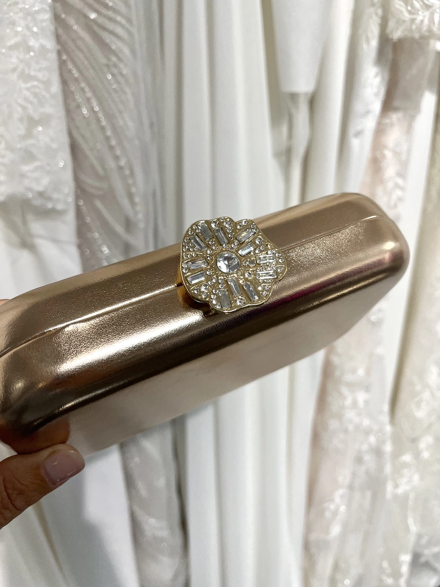 BOLSO ORO ROSA FLOR PEDRERÍA