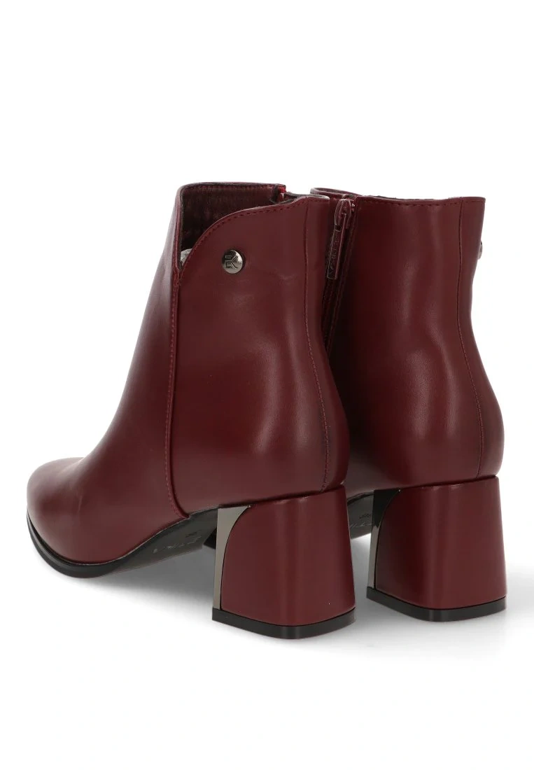 Este botín, en un vibrante y profundo color burdeos, destaca por su original detalle en plata en el tacón, que aporta un brillo sutil y sofisticado. Este toque metálico eleva el diseño, convirtiendo un botín clásico en una pieza única y llena de personalidad. El estilo weekend es ideal para cualquier ocasión, ya sea una salida informal con amigas o una velada especial. El tacón medio de 6 cm te proporciona la altura perfecta para estilizar tu figura y moverte con total confianza durante todo el día. La caña de 15 cm abraza el tobillo, creando una silueta limpia y favorecedora.