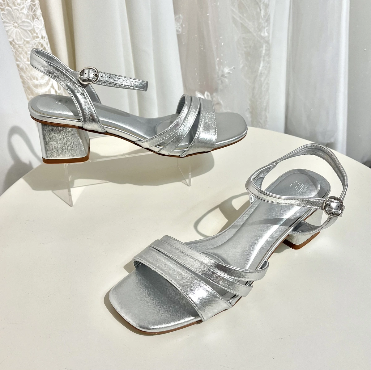Sandalia de tacón cuadrado, pala de tiras en empeine y cierre de hebilla en tobillo.