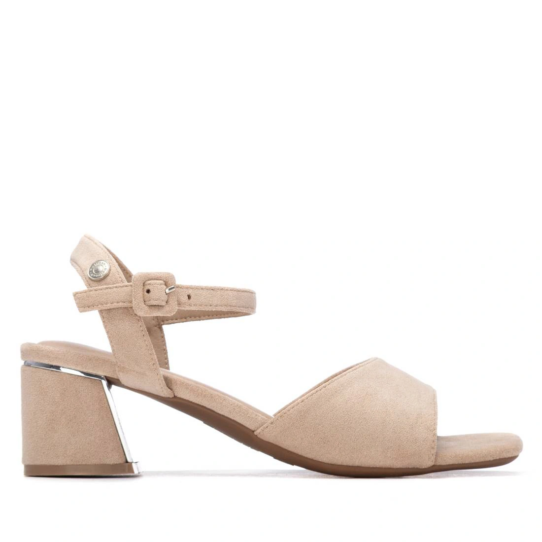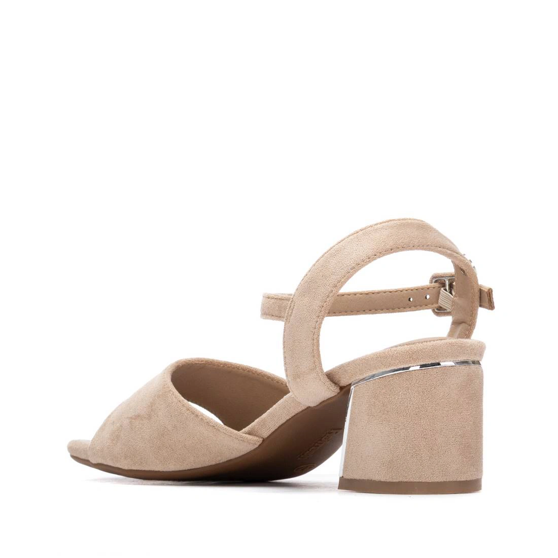 Sandalia para mujer de la marca Refresh. Fabricado en material sintético, en color beige, con tacón de 6cm, plantilla sintética acolchada, suela de goma y con cierre de hebilla.