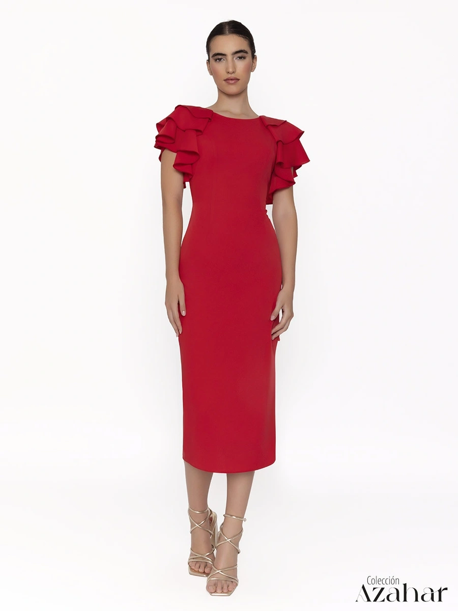 Un vestido sencillo pero muy elegante de la firma española Casting. De corte recto y volantes en las mangas, está realizado en crepe de color rojo. Sin duda es un vestido que podrás utilizar en variadas ocasiones, dependiendo siempre de los complementos que lleves.