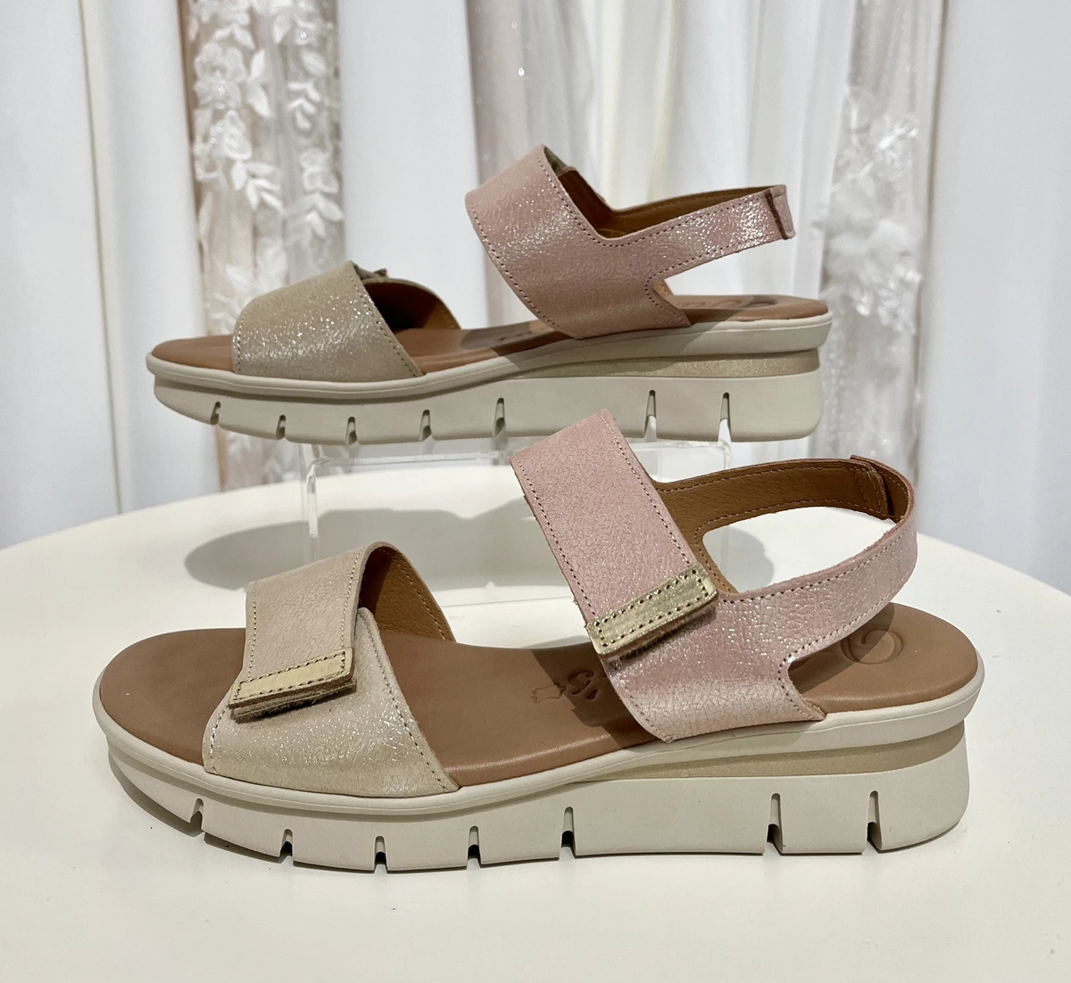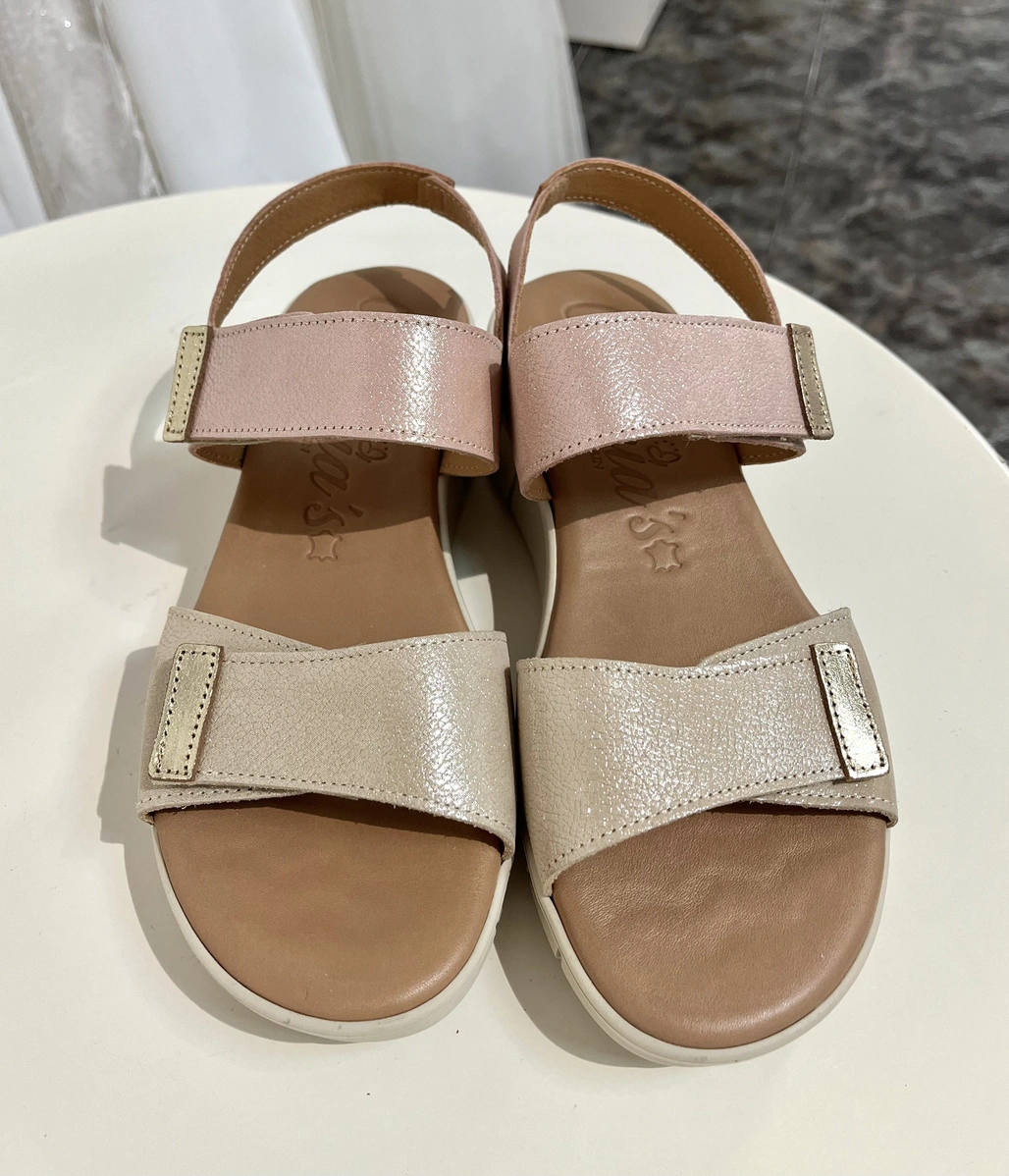 Sandalia de verano de la firma española Valerias. Esta marca está reconocida como referente en sandalias tipo "confort", por lo que es ideal para aquella mujer que quiera ir cómoda, llevar una sandalia puesta durante todo el día y a la vez ir elegante y a la moda. La plantilla es de gel, por lo que sentirás que caminas sobre algodones.