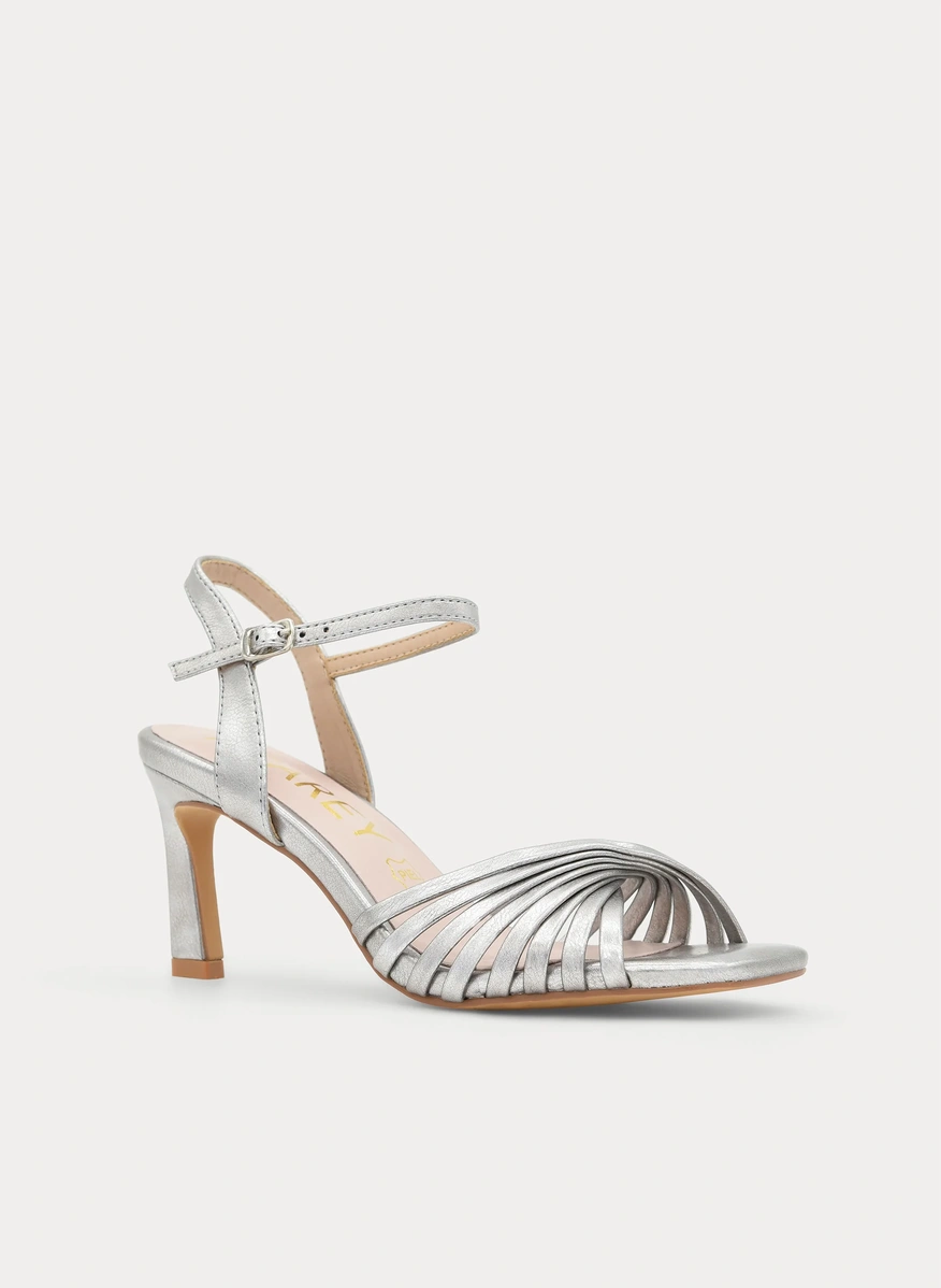 Delicadeza y sofisticación se unen en estas sandalias color perla, un diseño luminoso y femenino pensado para convertirte en la Invitada perfecta. Su elegante juego de tiras finas en la pala crea un efecto envolvente que estiliza el pie con sutileza y distinción.