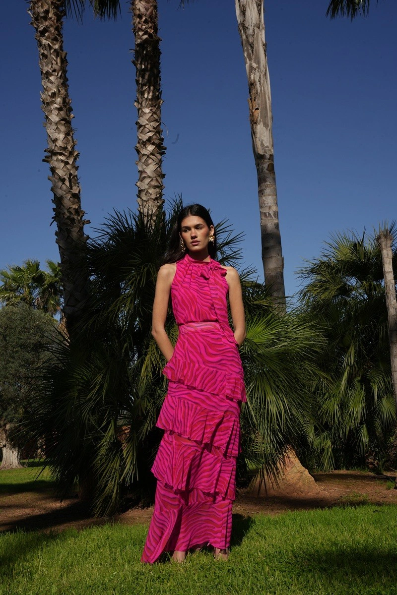 El conjunto Selena en color fucsia, confeccionado en tejido de gasa estampada, es una opción vibrante y sofisticada para cualquier evento especial o como vestido de invitada. El top con detalle de lazada aporta un toque femenino y romántico, mientras que la falda con volantes y forro garantiza movimiento, comodidad y una caída elegante. Ideal para bodas, bautizos, comuniones o celebraciones, este conjunto combina color, textura y detalles para un look moderno y lleno de estilo.