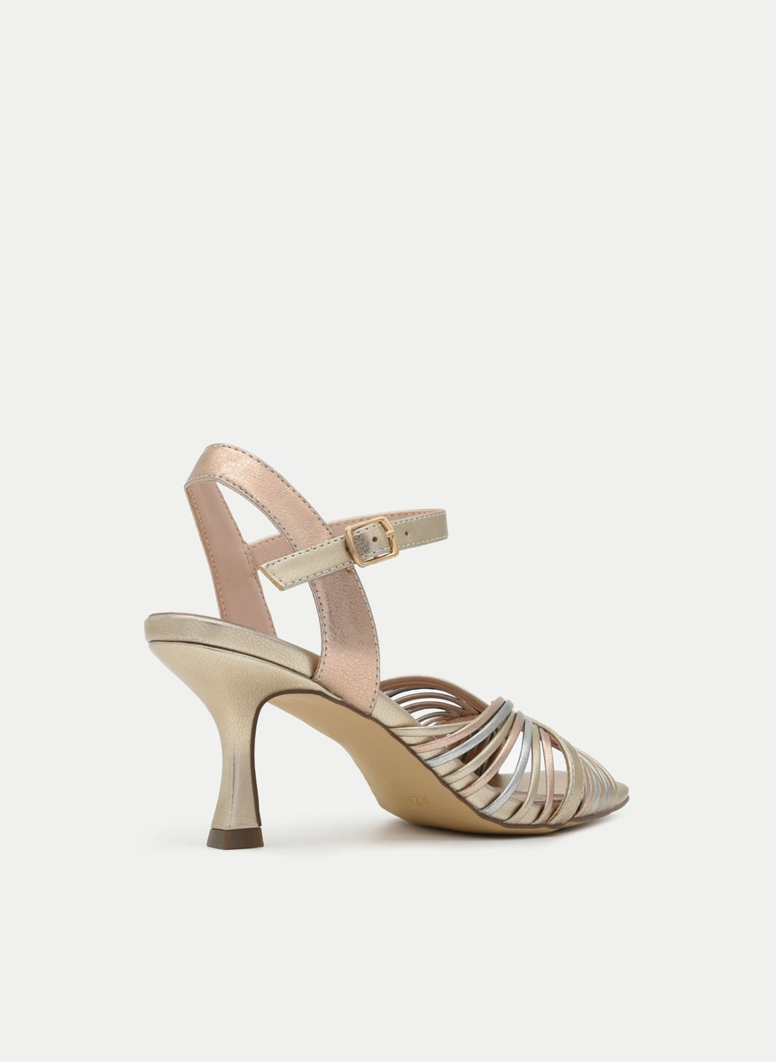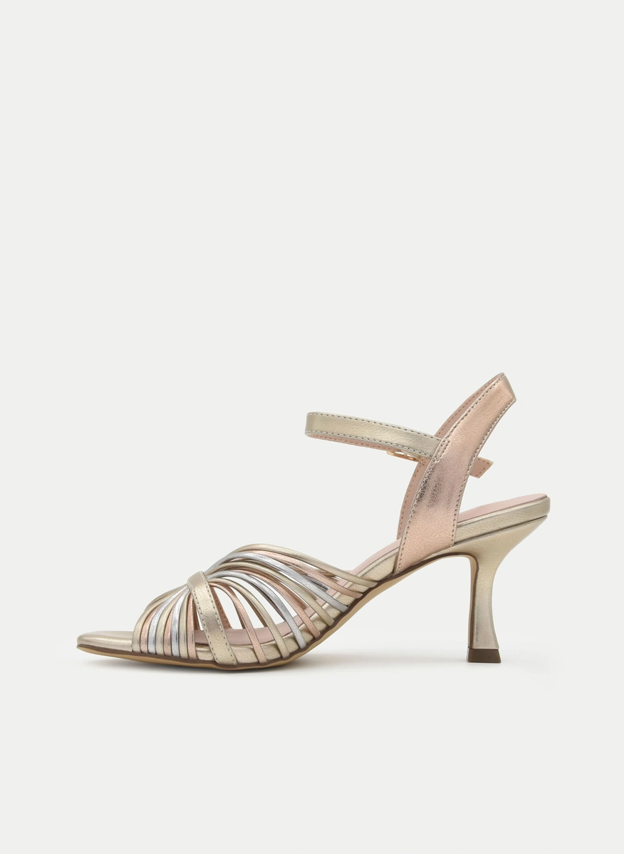 Un modelo de sandalias elegantes con tacón fino medio-alto, ideal para convertirte en la Invitada perfecta en bodas, celebraciones y ocasiones especiales. La mezcla sutil de dorados, tonos champagne y matices metalizados las posiciona como imprescindibles entre las sandalias metalizadas, perfectas como sandalias para bodas y sandalias para eventos donde quieras brillar con estilo propio.
