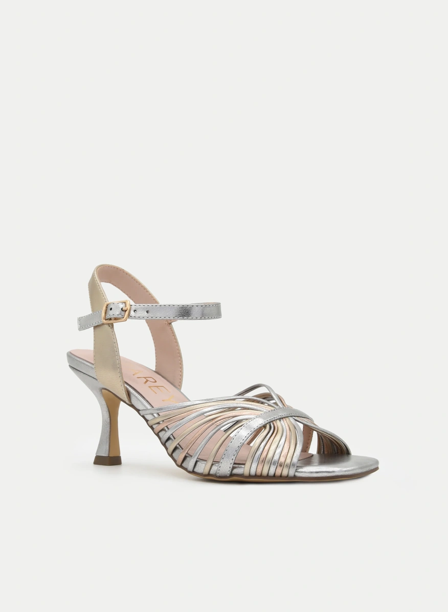 Un modelo de sandalias elegantes con tacón fino medio-alto, ideal para convertirte en la Invitada perfecta en bodas, celebraciones y ocasiones especiales. La mezcla sutil de dorados, tonos champagne y matices metalizados las posiciona como imprescindibles entre las sandalias metalizadas, perfectas como sandalias para bodas y sandalias para eventos donde quieras brillar con estilo propio.