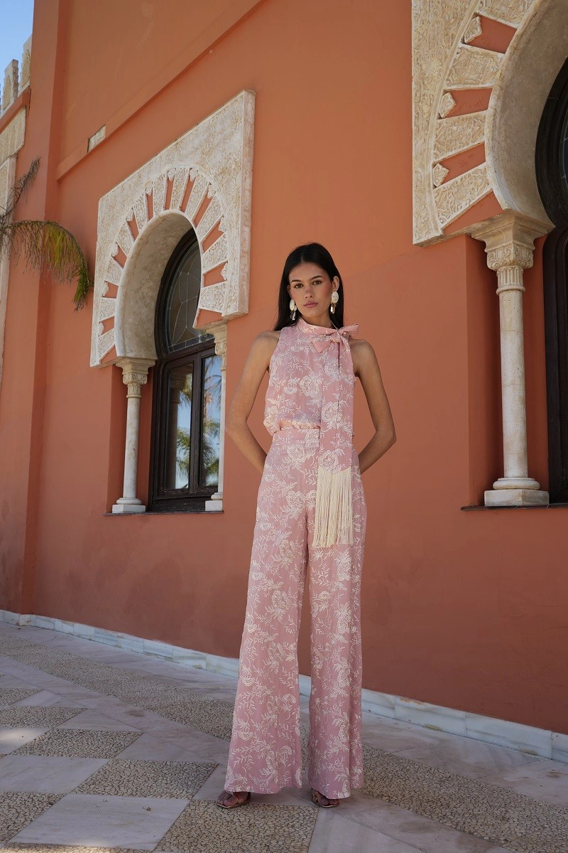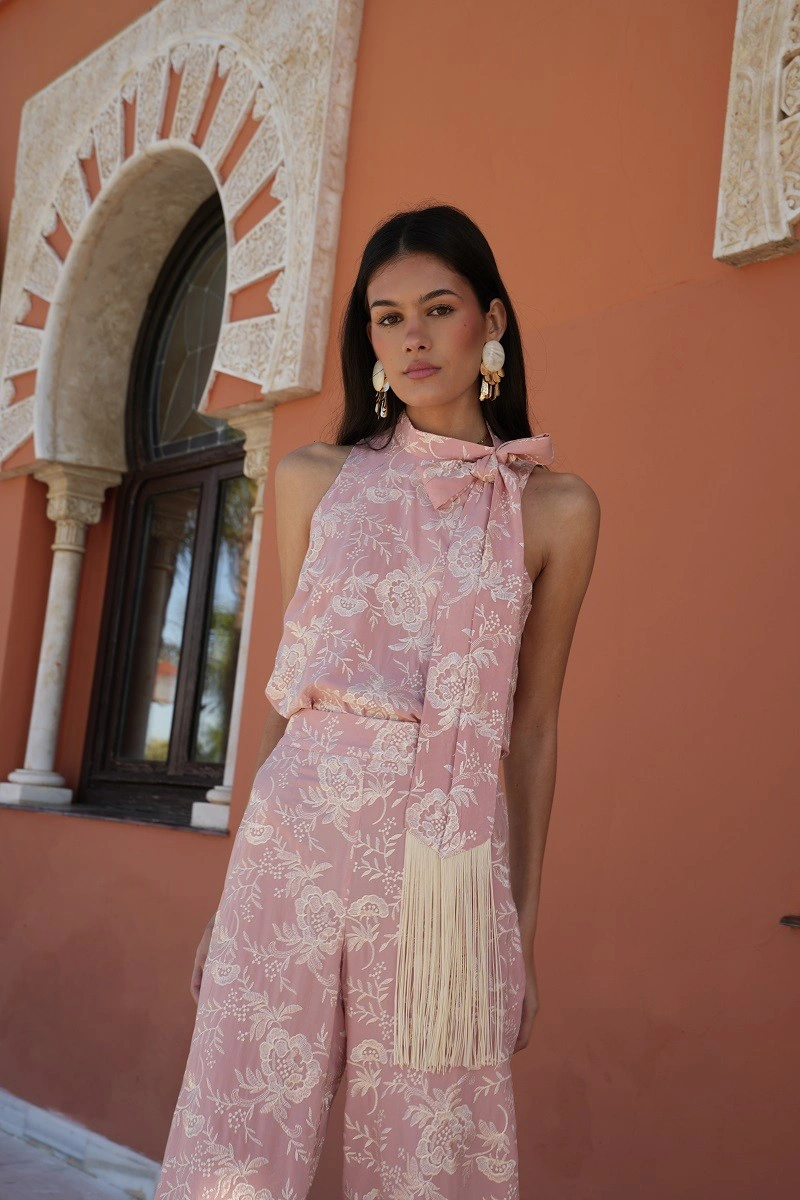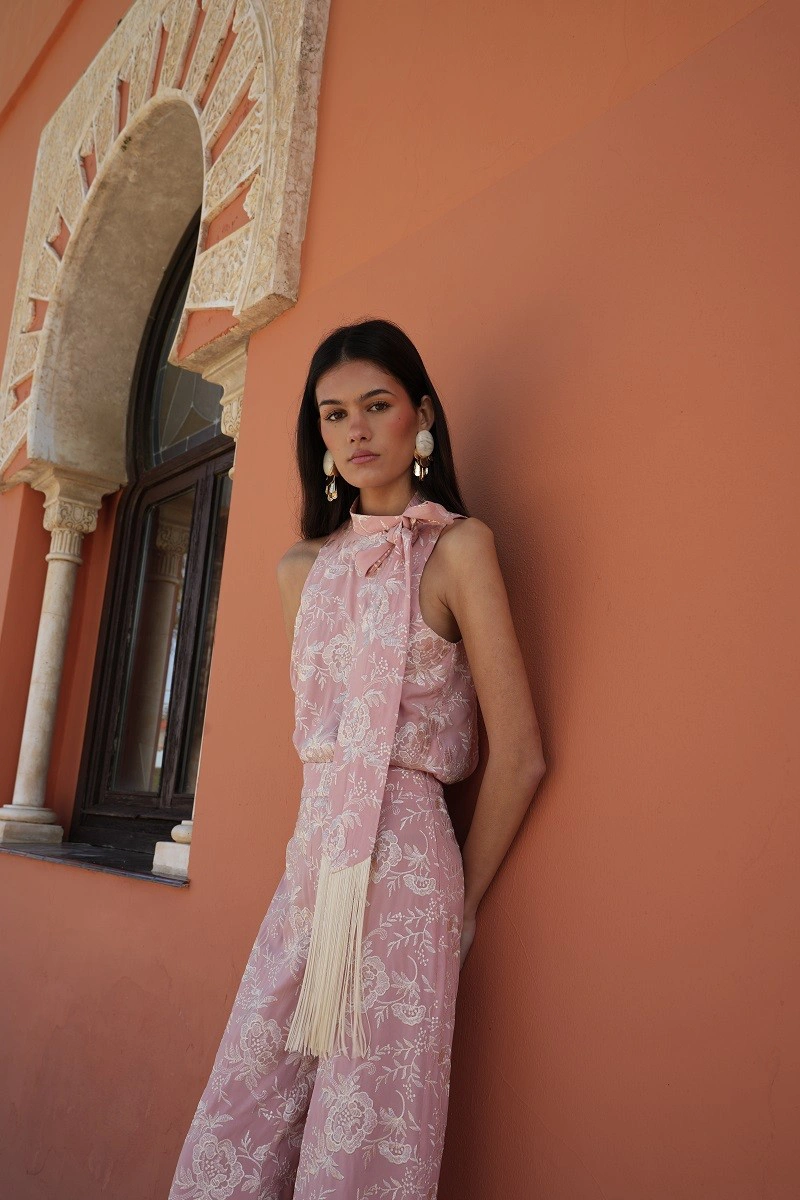 El conjunto Leo en tejido de voile bordado es una opción moderna y elegante para cualquier evento especial o como vestido de invitada diferente y sofisticada. El top incluye un delicado detalle de lazada en el cuello y terminación en flecos que aporta movimiento y un toque, mientras que el pantalón recto de tiro alto con cremallera lateral garantiza un ajuste perfecto y estiliza la silueta. Ideal para bodas, bautizos, comuniones, graduaciones o celebraciones, este conjunto combina textura, color y detalles, logrando un look completo, actual y lleno de personalidad.