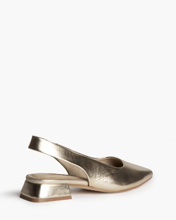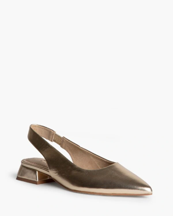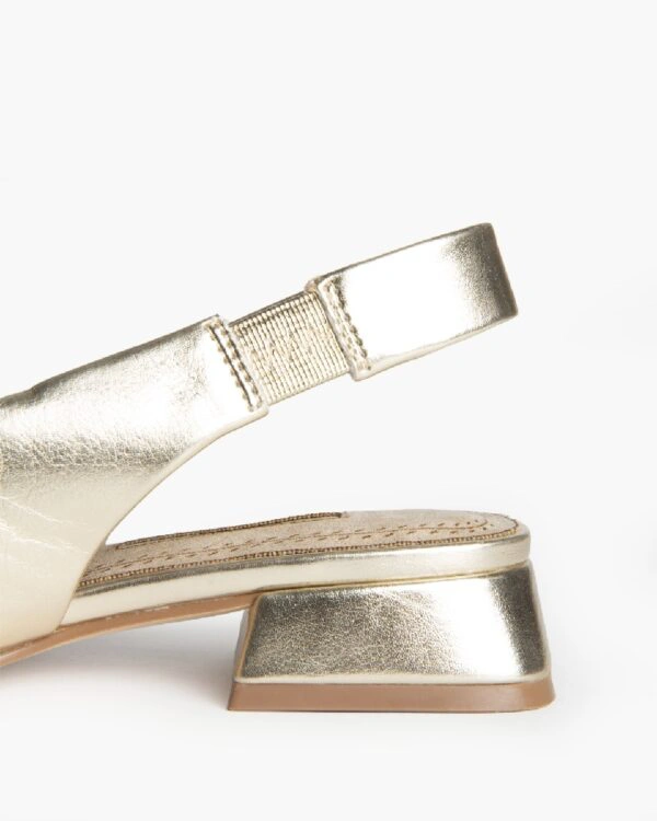 Sandalia de tacón bajo. Acabado en punta. Elástico en el lateral inte-rior. Tacón cuadrado.