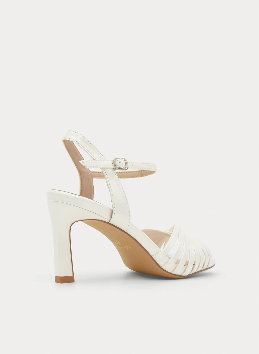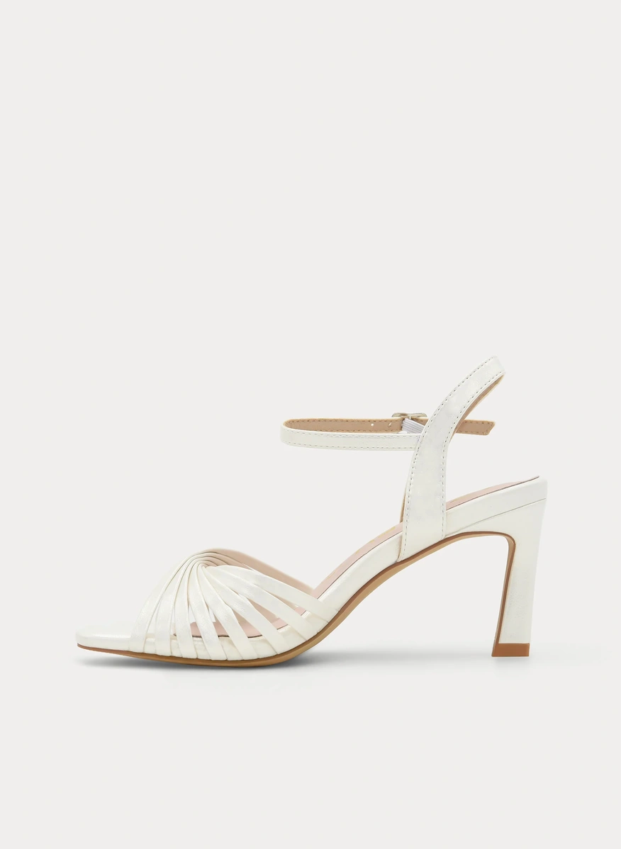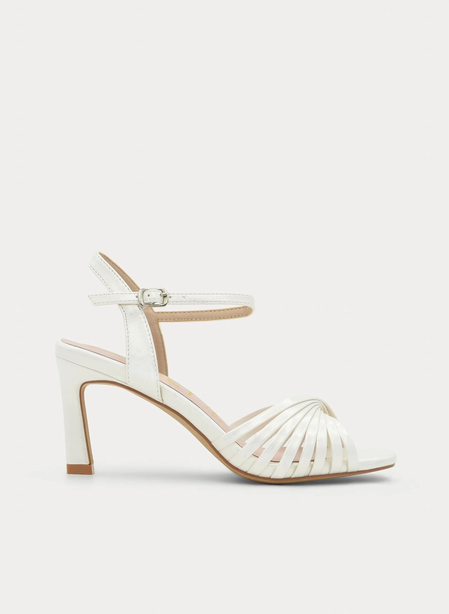 Delicadeza y sofisticación se unen en estas sandalias color perla, un diseño luminoso y femenino pensado para convertirte en la Invitada o novia perfecta. Su elegante juego de tiras finas en la pala crea un efecto envolvente que estiliza el pie con sutileza y distinción.