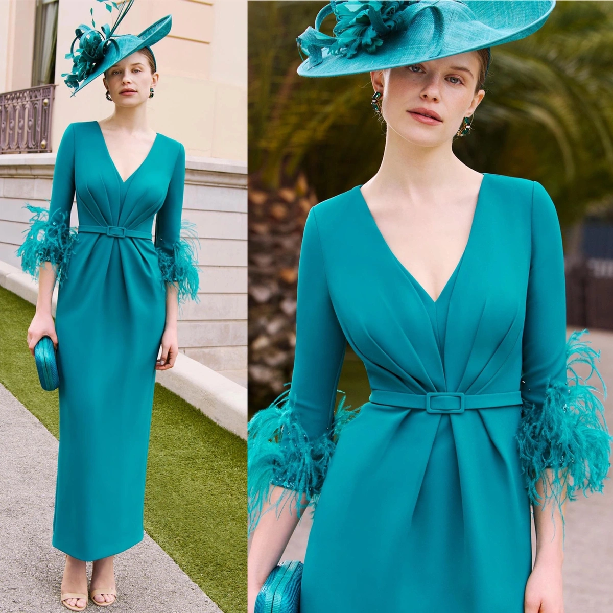 Vestido de fiesta largo. Confeccionado en crepé satén. Escote pico. ...