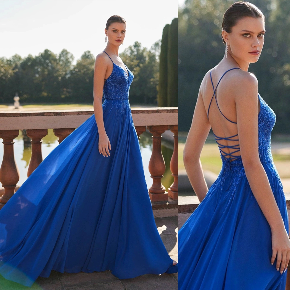 Vestido de fiesta largo. Confeccionado en georgette con pedrería. Con ...