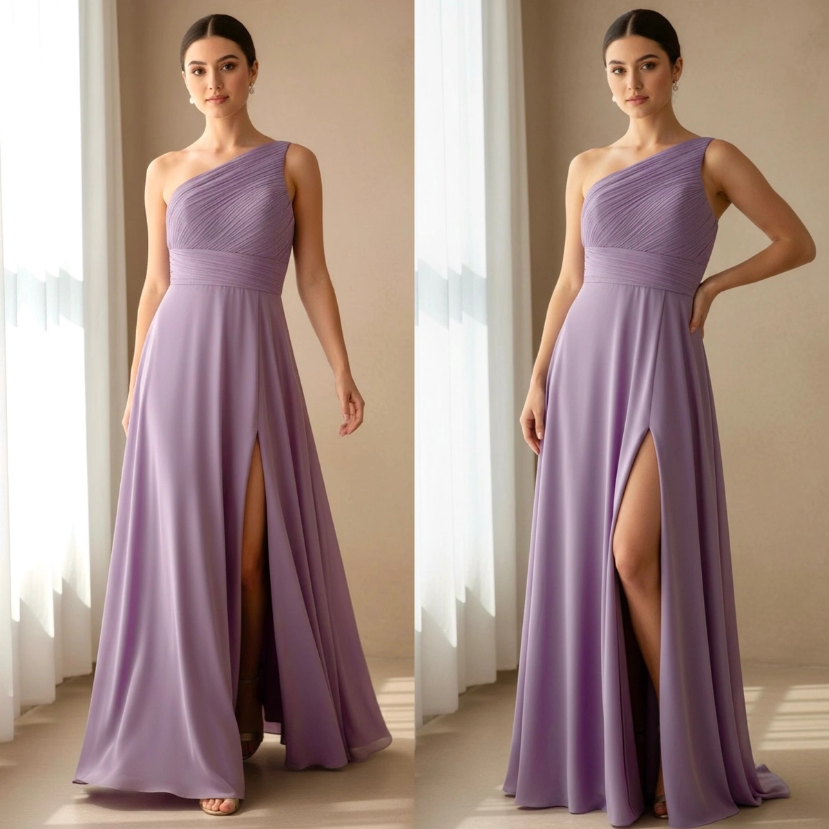 Vestido de fiesta largo, con escote en pico drapeado y ...