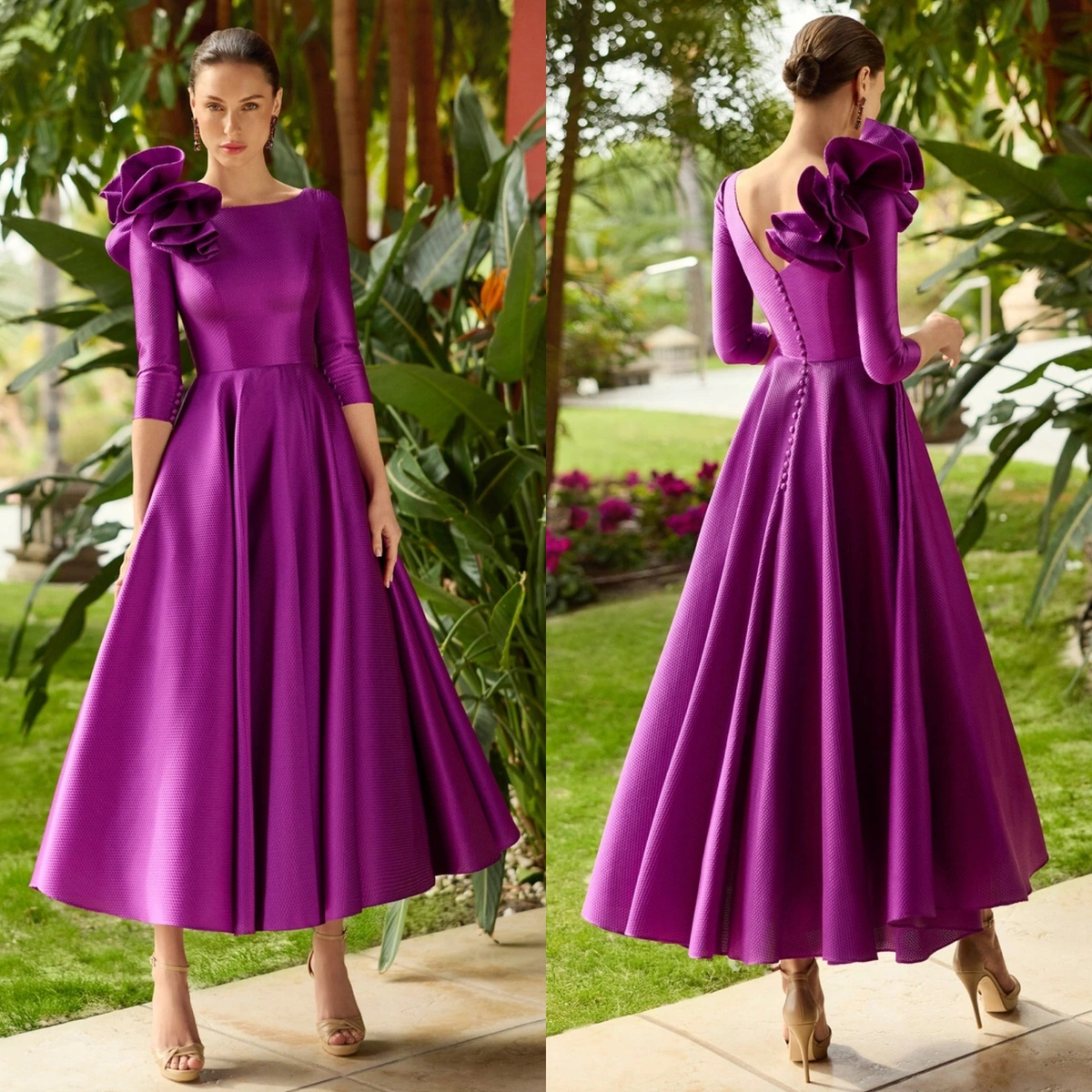 Vestido de fiesta midi, confeccionado en brocado. Escote barco. Espalda ...