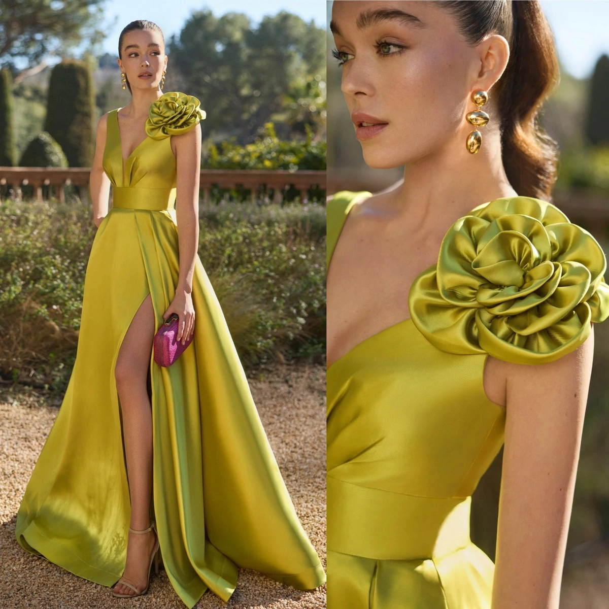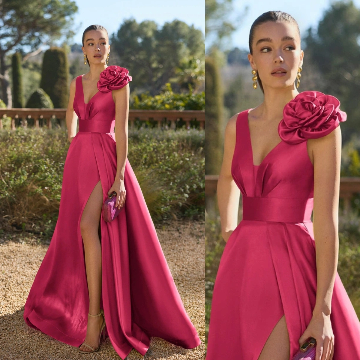 Vestido de fiesta largo. Confeccionado en mikado. Escote pico, tirantes ...