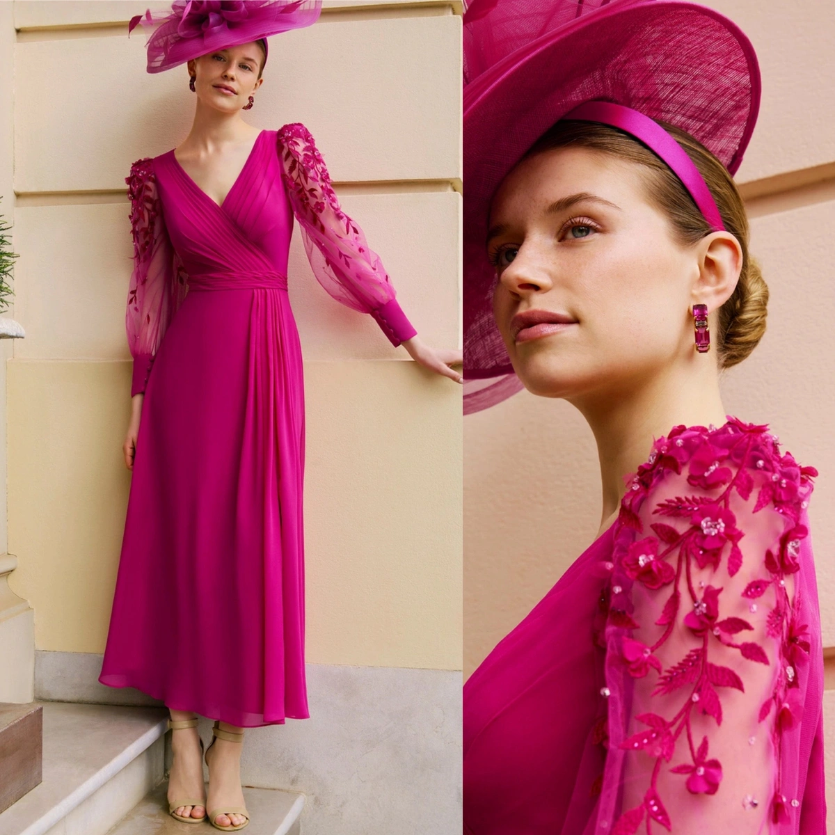Vestido de fiesta midi, confeccionado en gasa. Con escote pico, ...