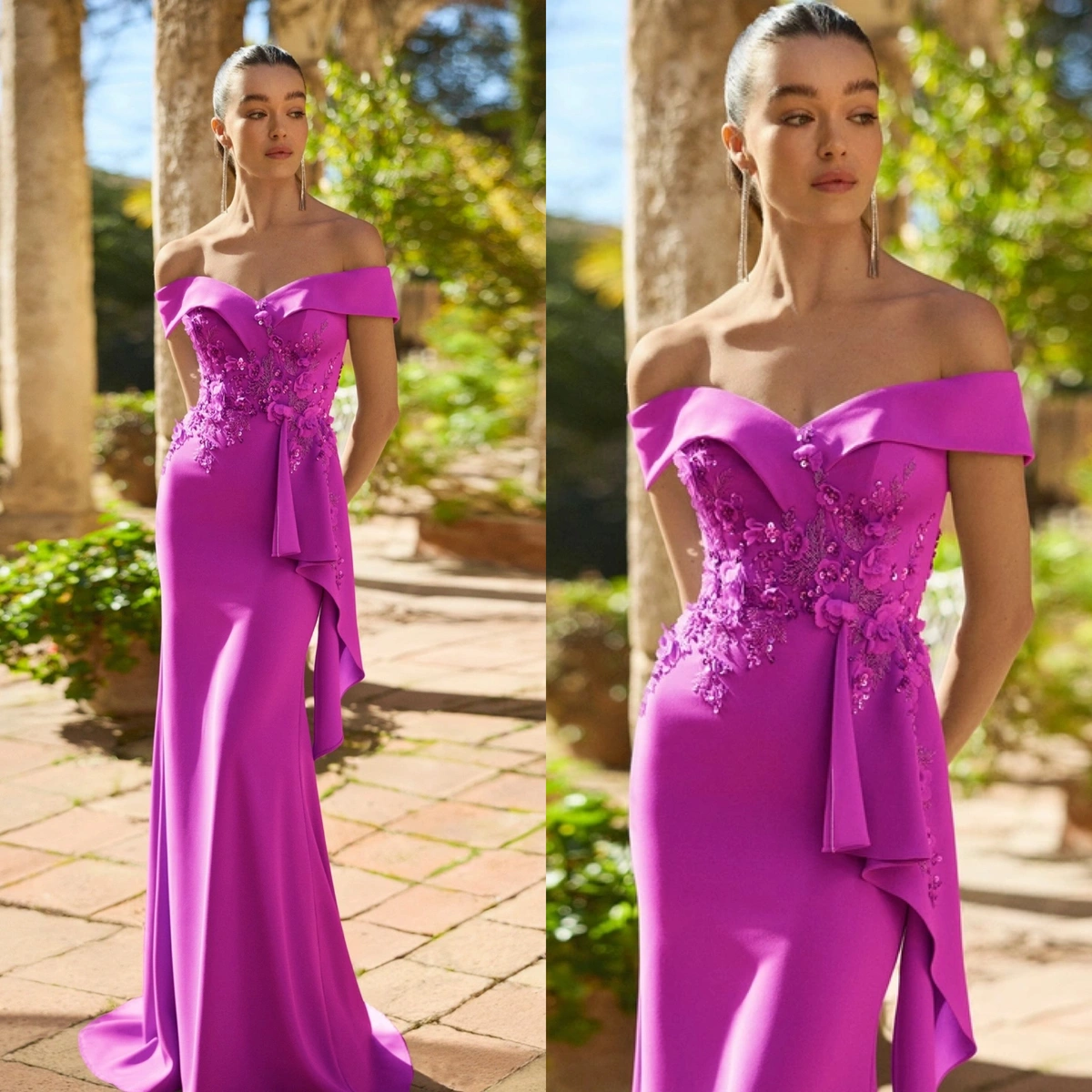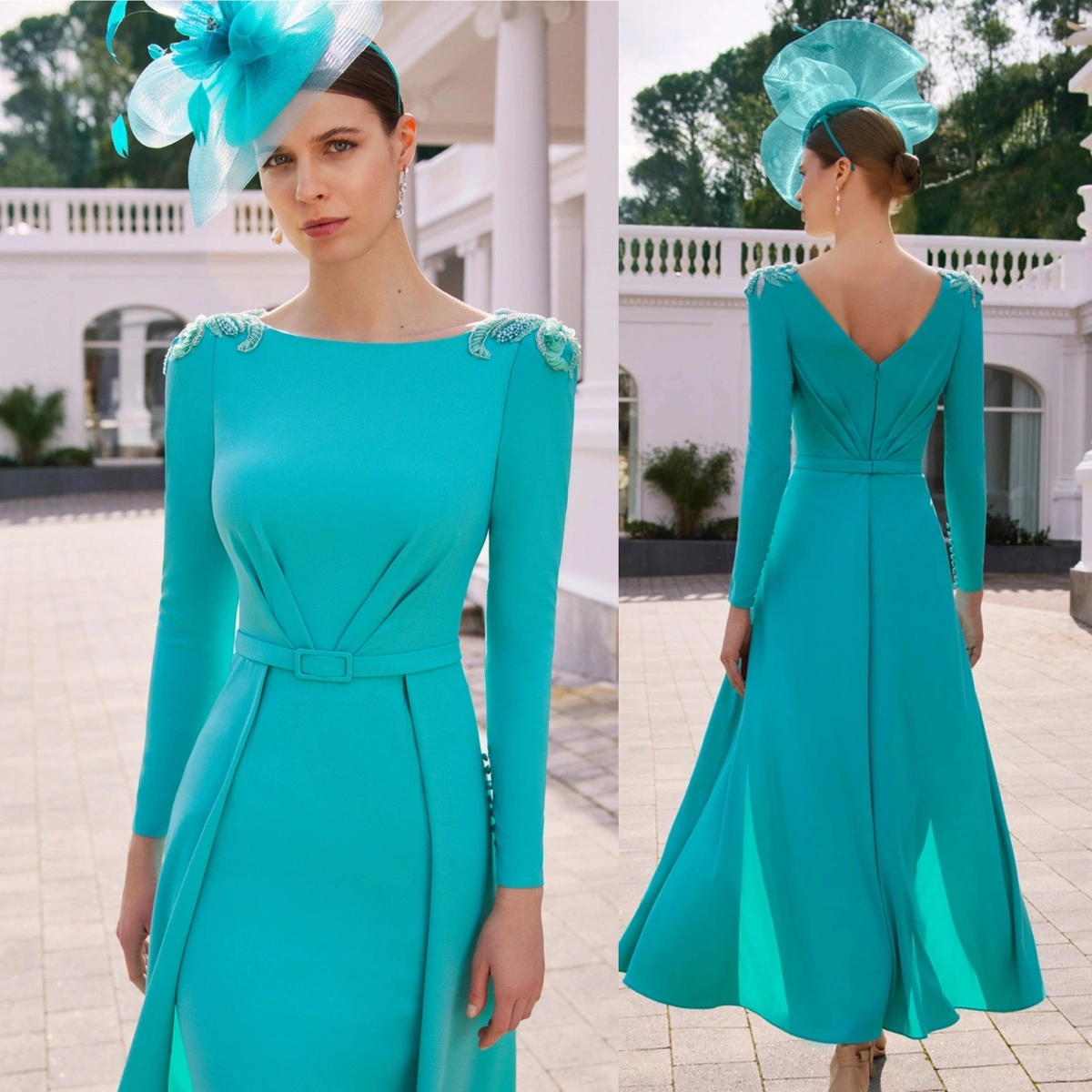 Vestido de fiesta largo, confeccionado en crepe, escote barco y ...
