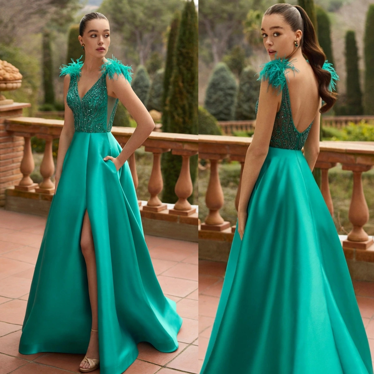 Vestido de fiesta largo. Confeccionado en mikado. Escote pico, espalda ...