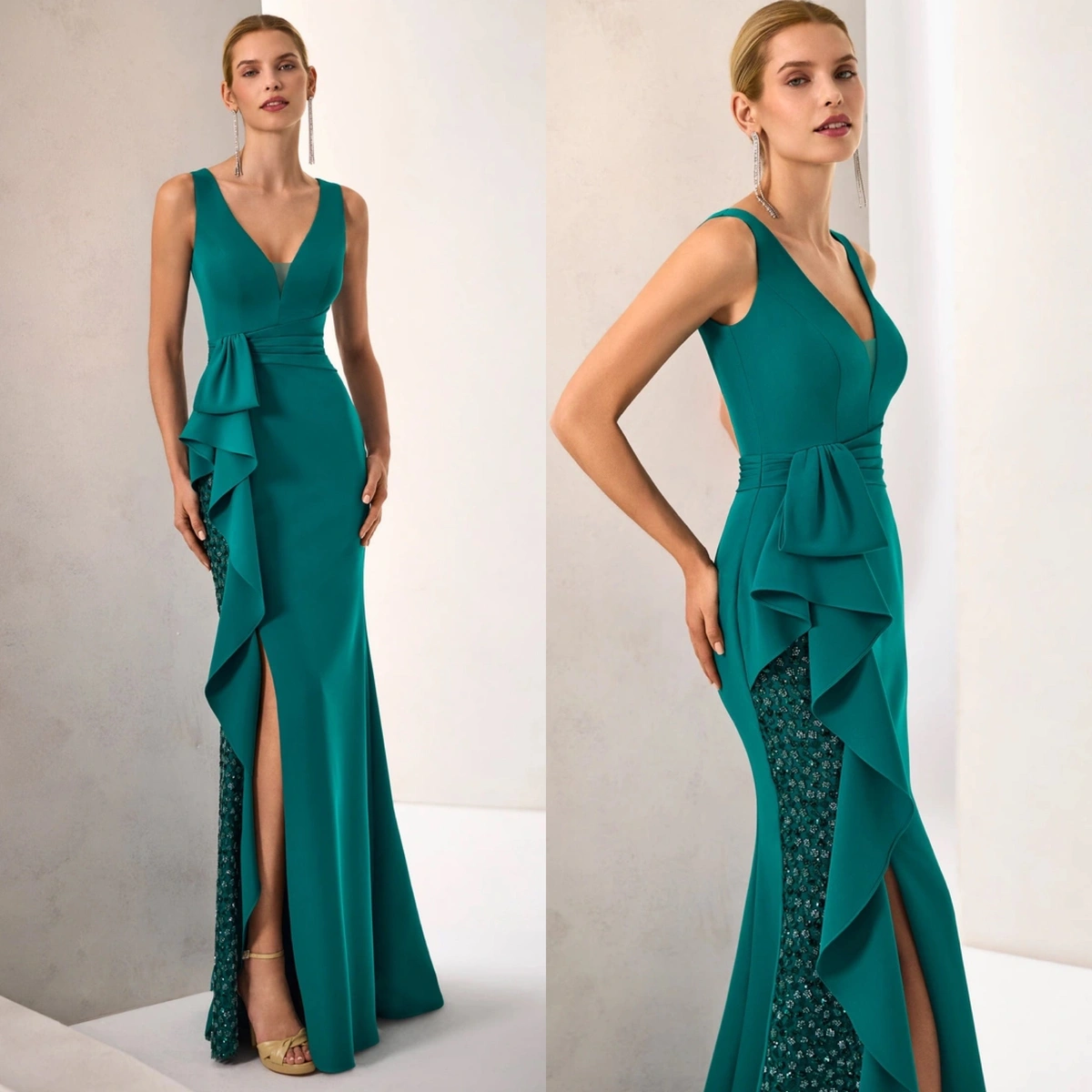 Vestido de fiesta largo dos piezas. Confeccionado en crepé elástico. ...