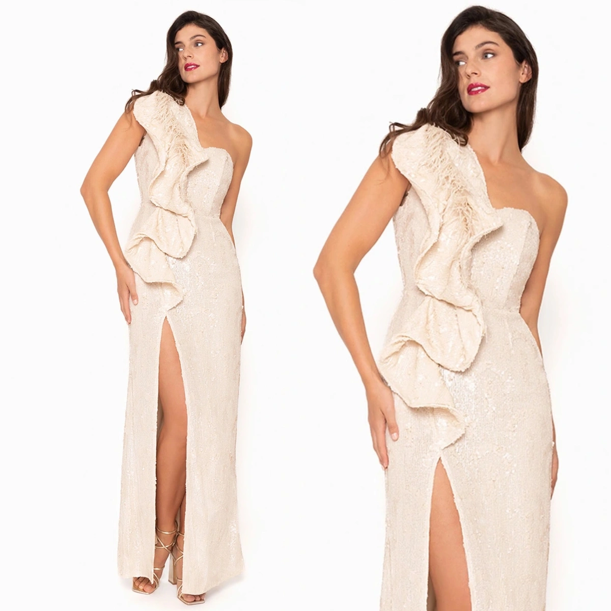 Vestido largo de corte elegante con diseño de hombros descubiertos ...