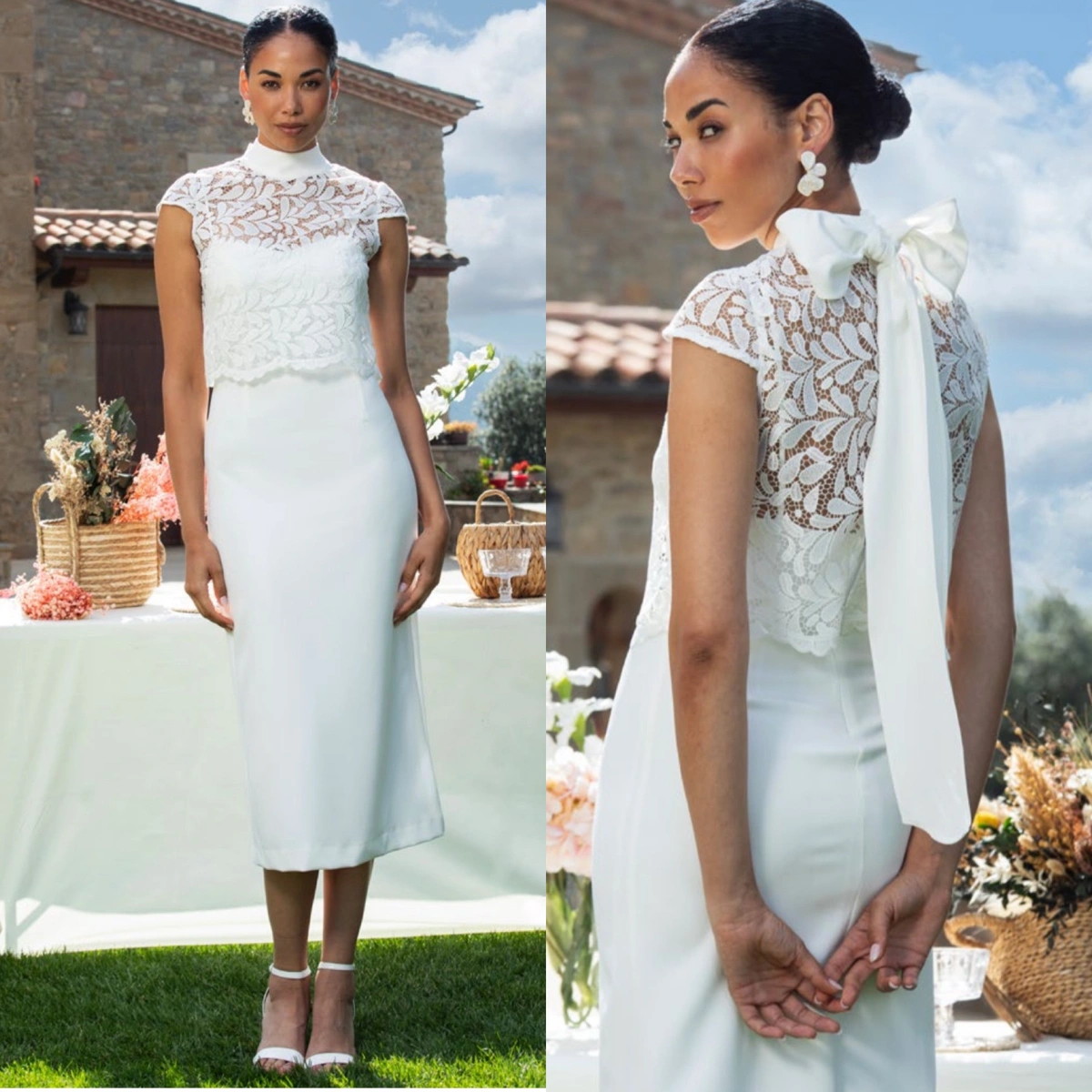 Vestido midi de fiesta de la firma española Herysa. Realizado en ...