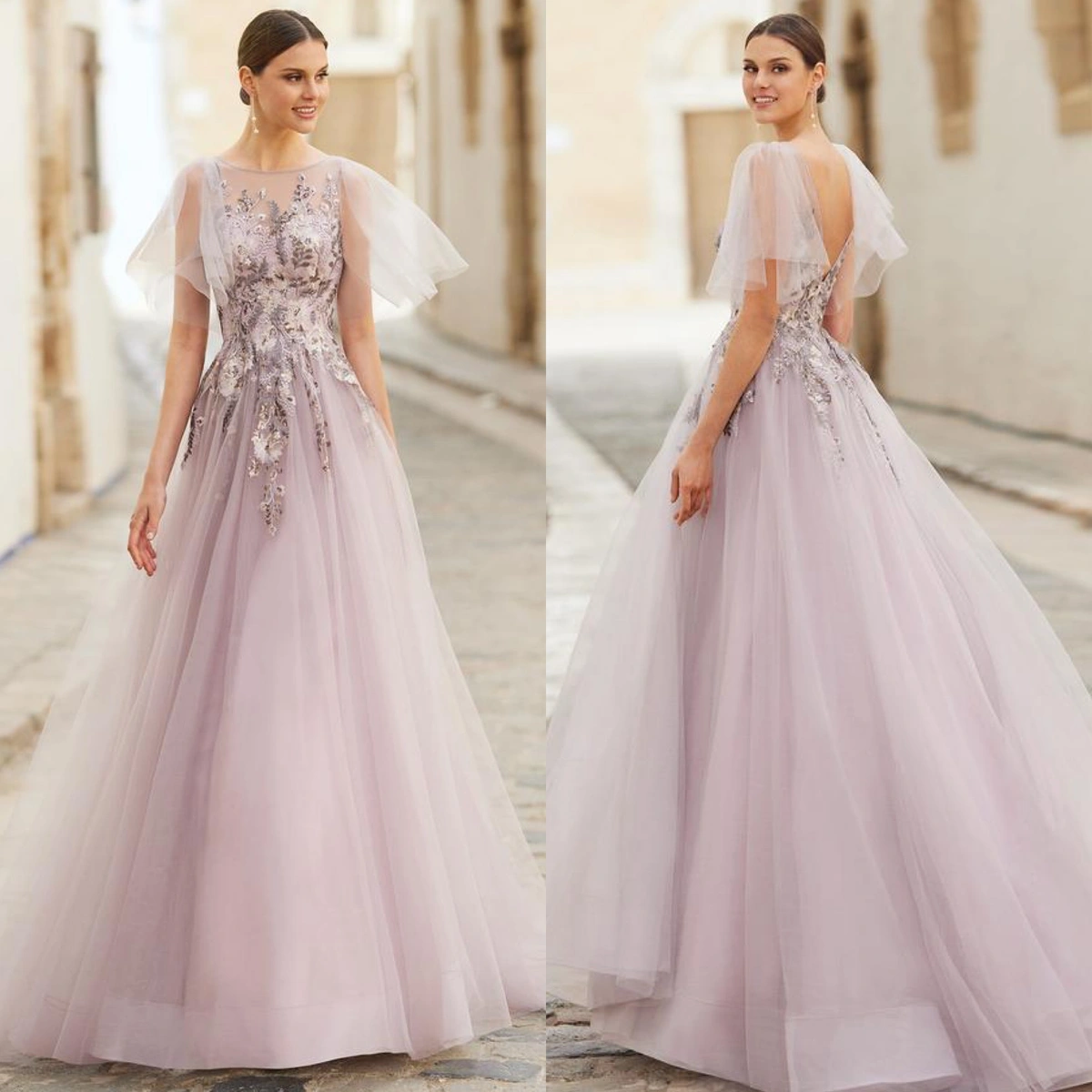 Vestido Nati Jimenez largo confeccionado en gasa y tul bordado. ...