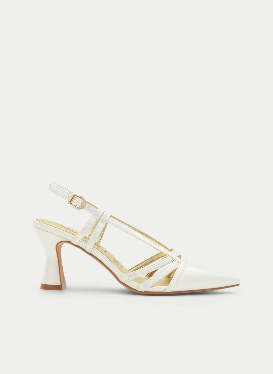 Salon destalonado de tacón medio. Acabado en punta, detalle de ...