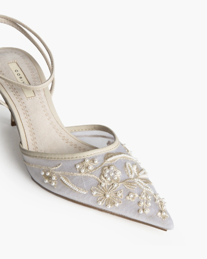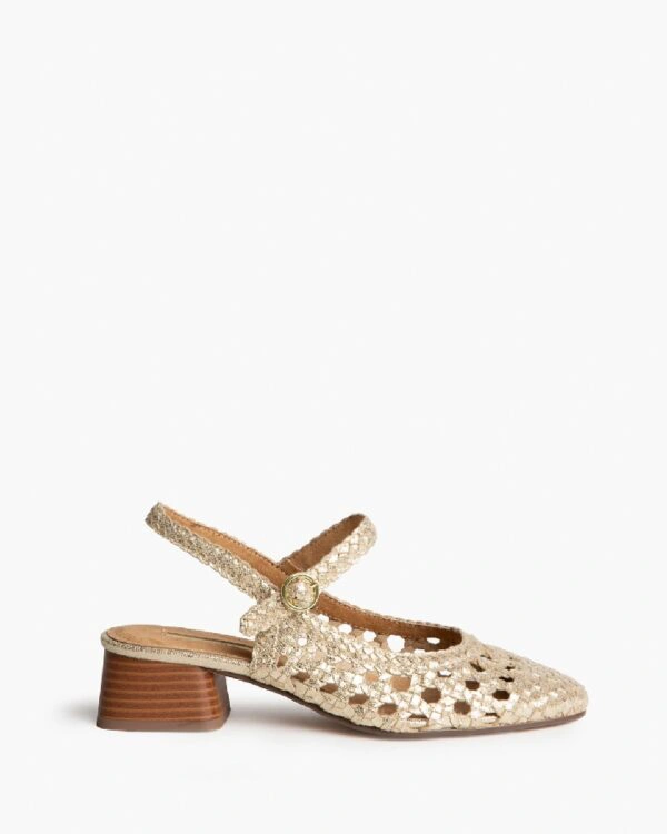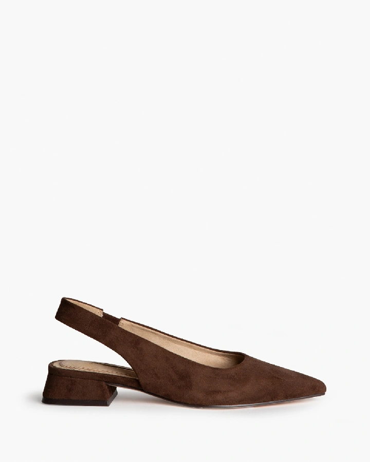 Salon destalonado de tacón medio. Acabado en punta, detalle de ...