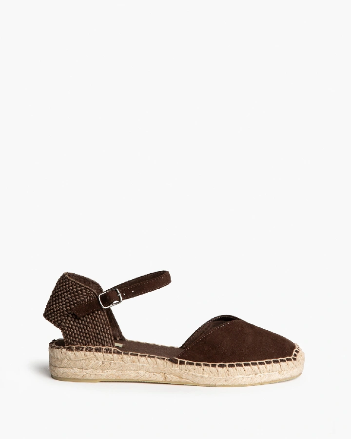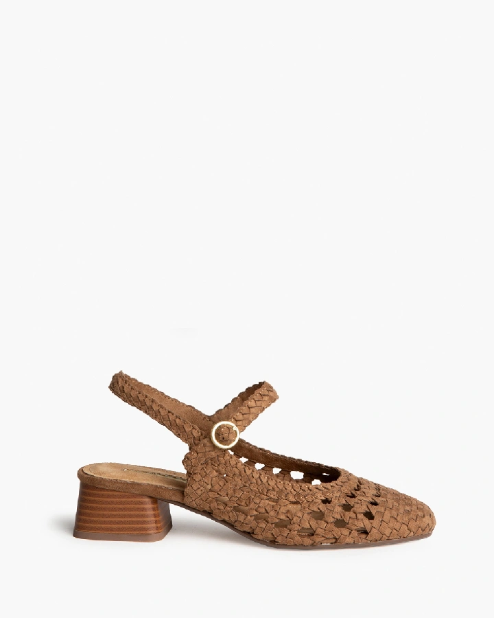 Sandalia de tacón bajo. Corte trenzado. Tacón ancho y acabado ...