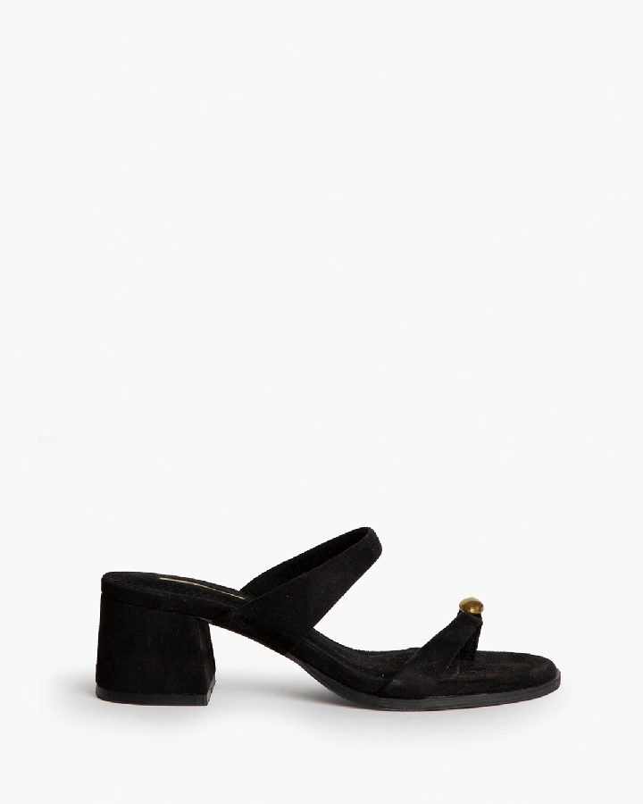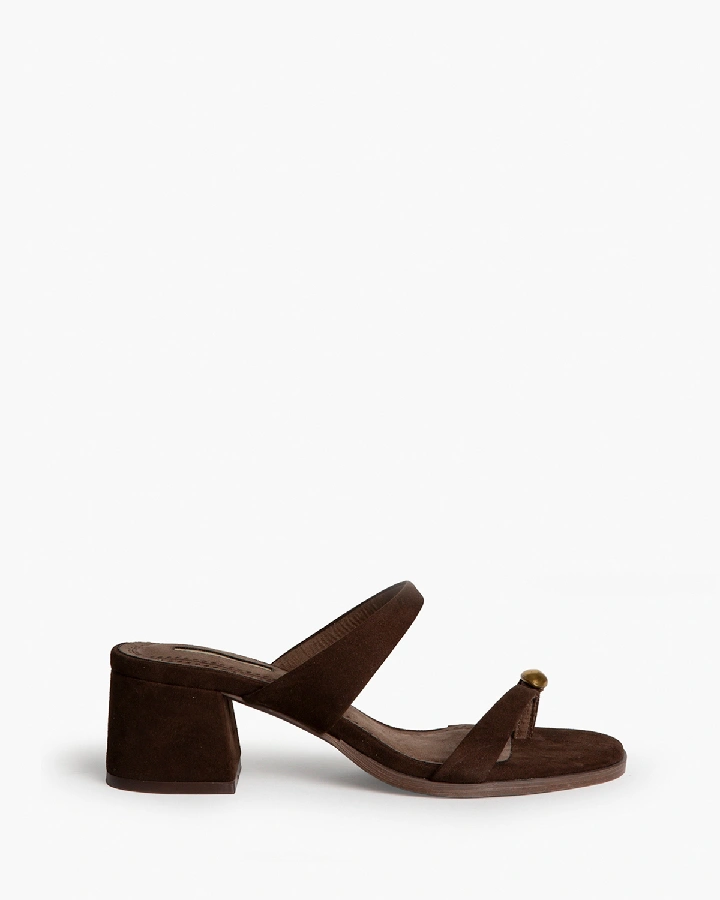 Sandalia de tacón bajo. Detalle de anillo en el dedo ...