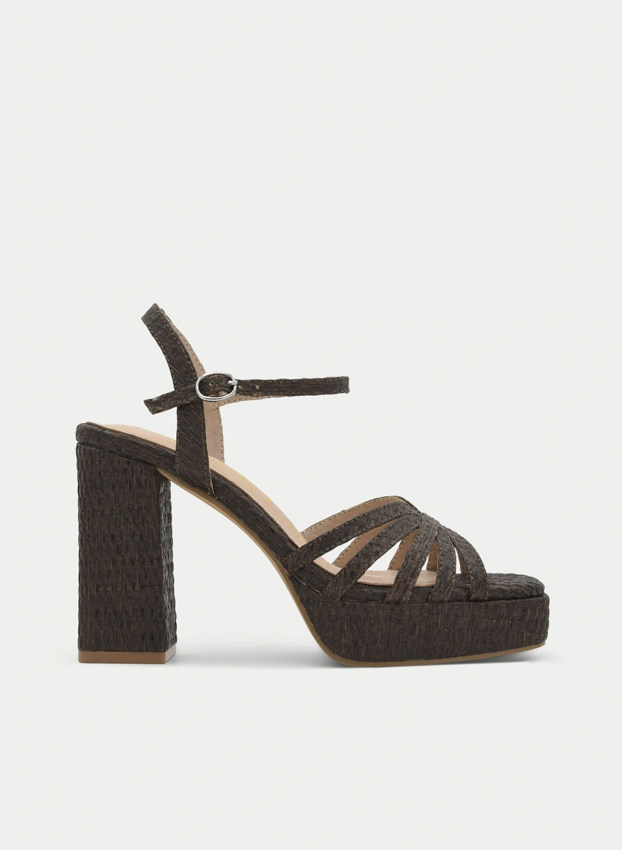 Esta sandalia marrón con plataforma y tacón anchoes una opción elegante ...