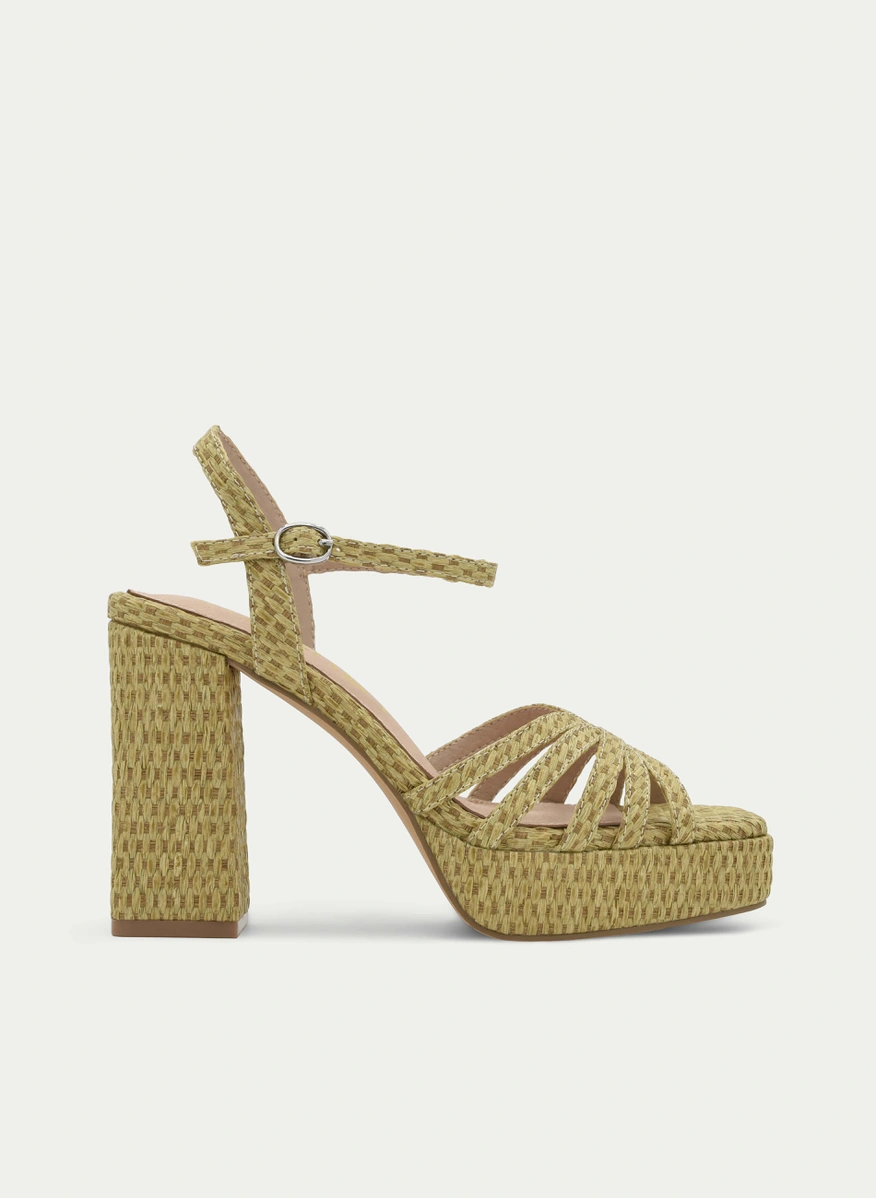 Esta sandalia beige con plataforma y tacón anchoes la combinación perfecta ...