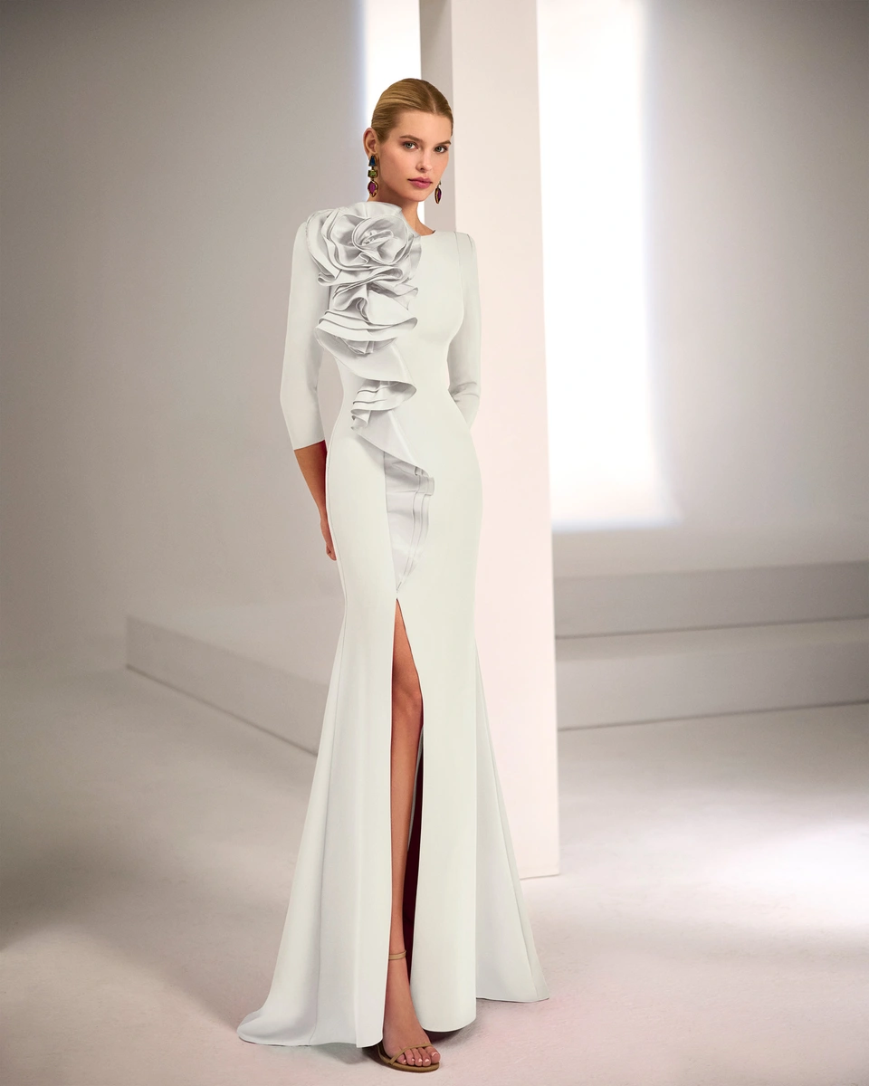 Vestido de fiesta largo. Confeccionado en crepé elástico. Escote barco. ...