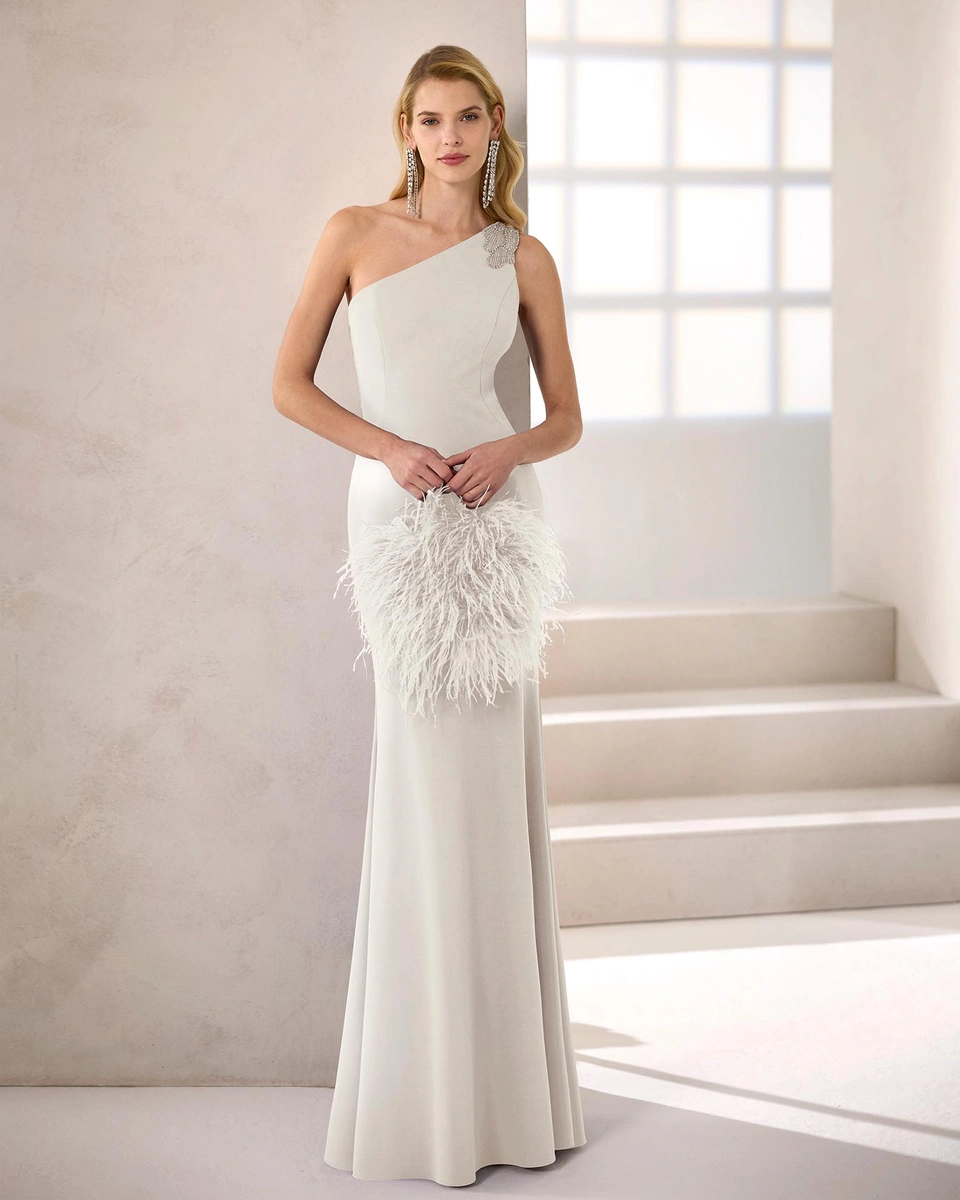 Vestido de fiesta largo. Confeccionado en crepé satén. Escote asimétrico ...